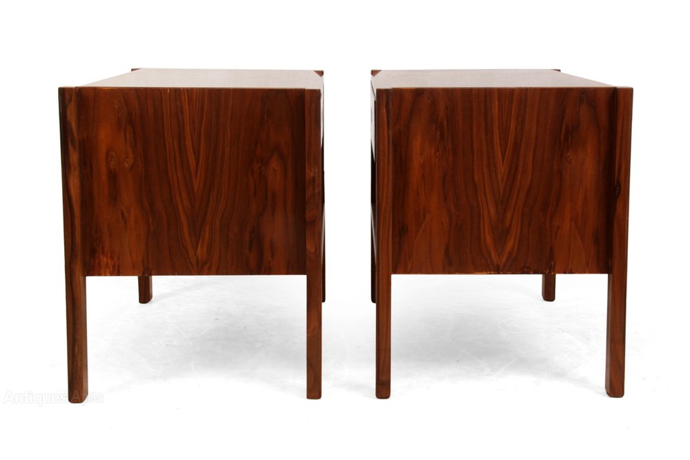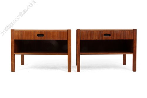 This pair of bedside chests have one single drawer with inset handle and shelf below rthey have been restored and polished and are in very good condition