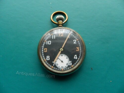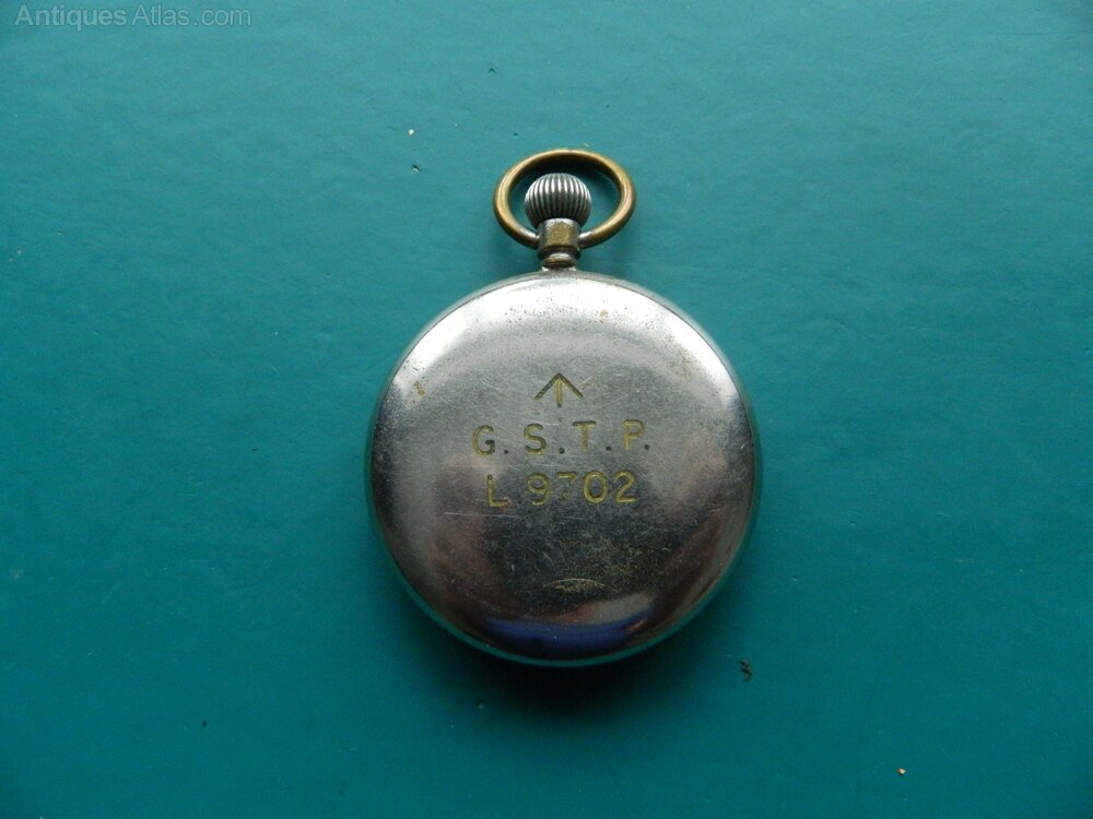 A chrome plated military issued pocket watch. The reverse is stamped G.S.T.P L 9702. The watch winds and ticks.Chrome plating is well worn.The post cost is included in the asking price.