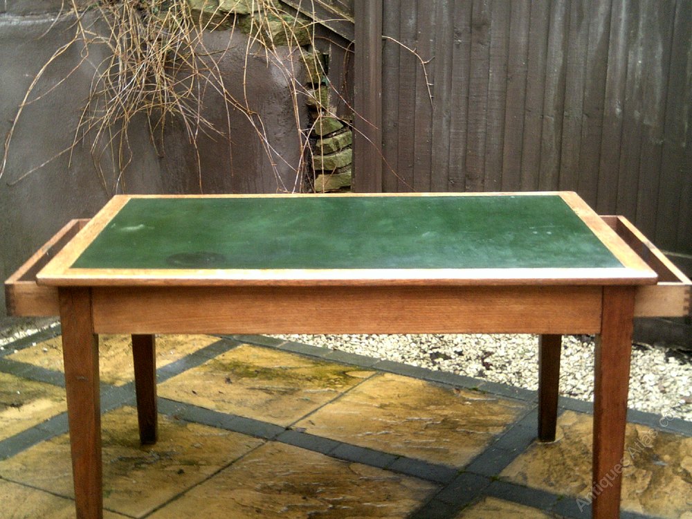 The desk is completely original and retains its green rexine skiver and brass cup handles.