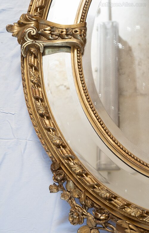 LouisXVI Style Gilt Ribbon and Bow Mirror Oval