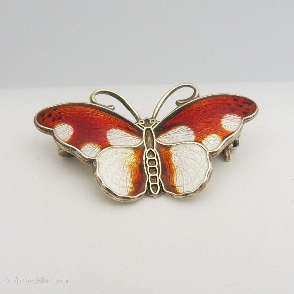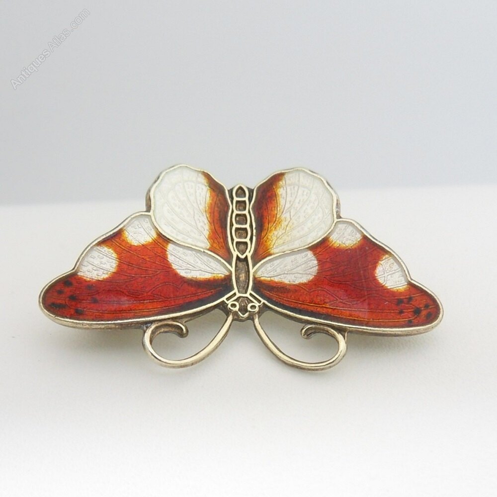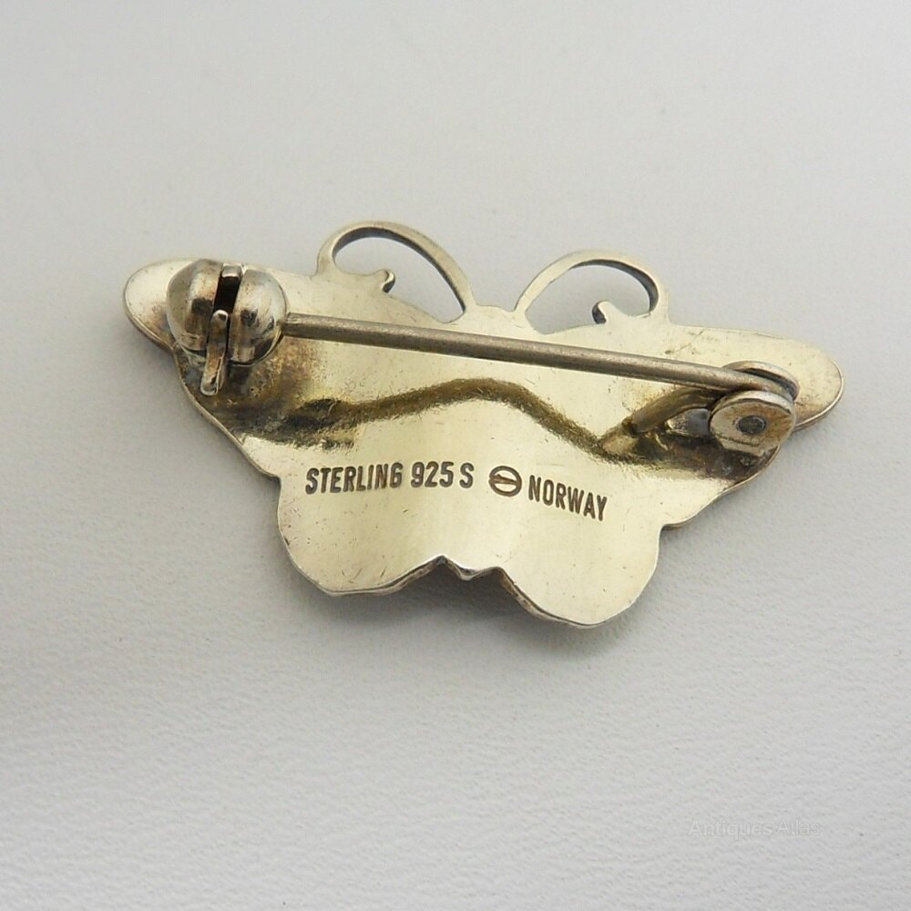 Norwegian Silver & Red Enamel Butterfly Brooch