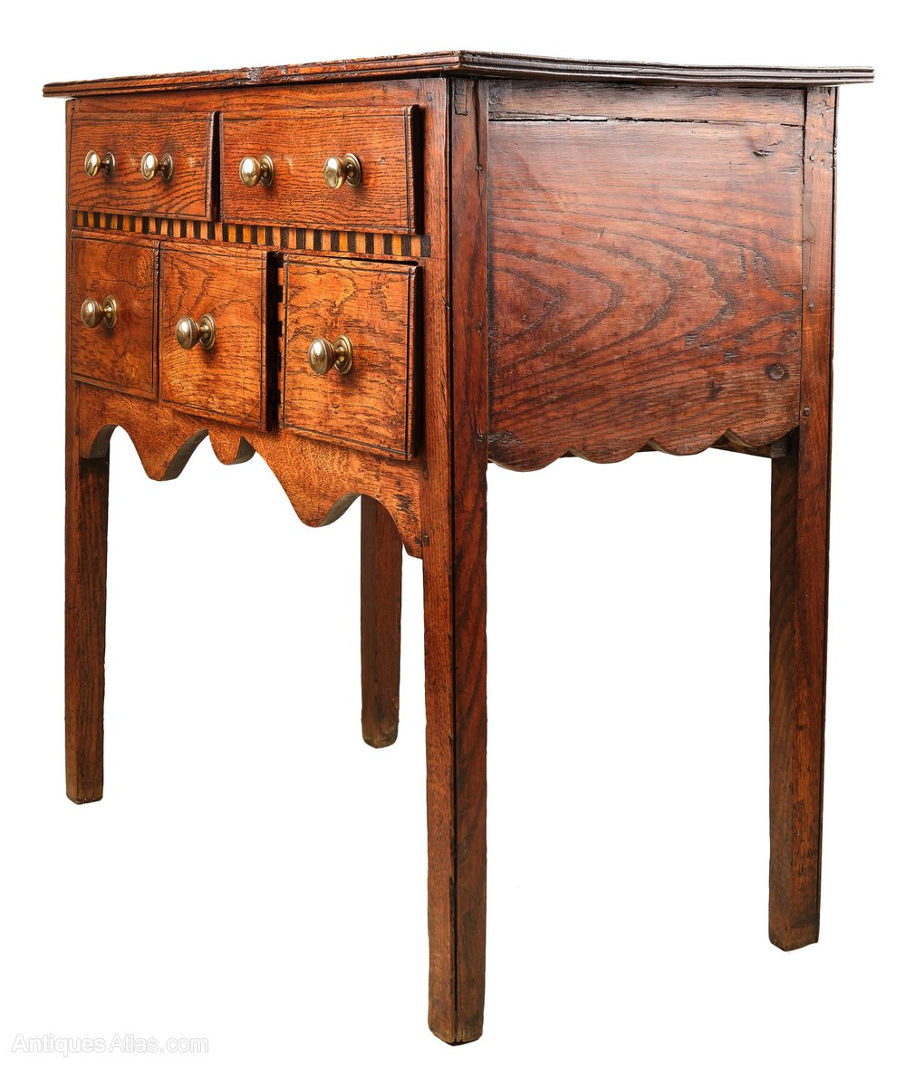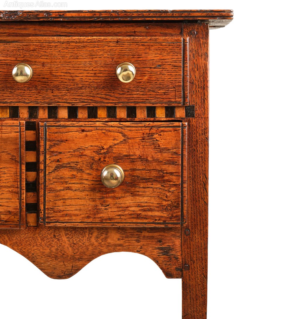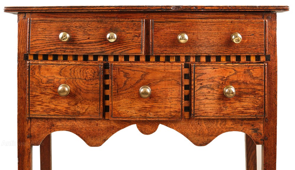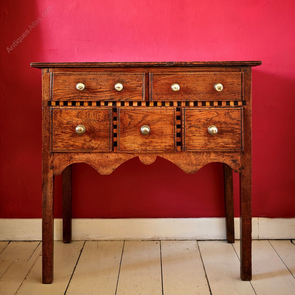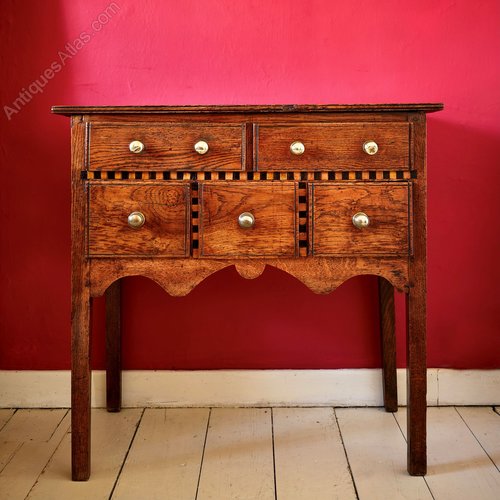 Oak & Chequer Inlaid Five Drawer Sidetable