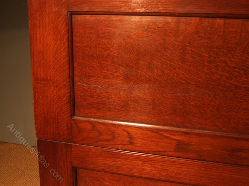 Solid oak and ply filing panelled cabinet probably 1950s . Handles of solid brass. Has been refurbished however there is a restored scratch to one panel-see photo of this.