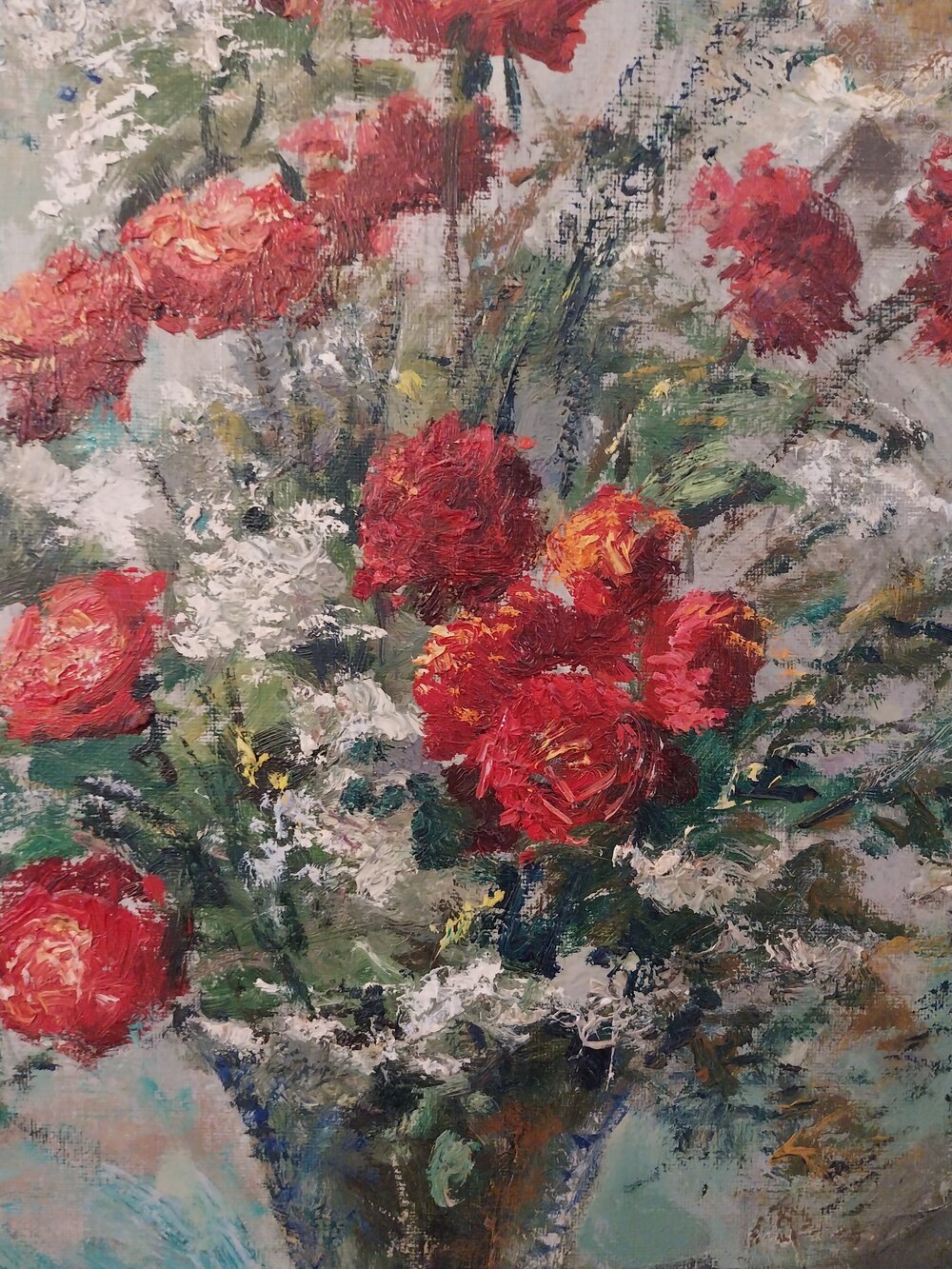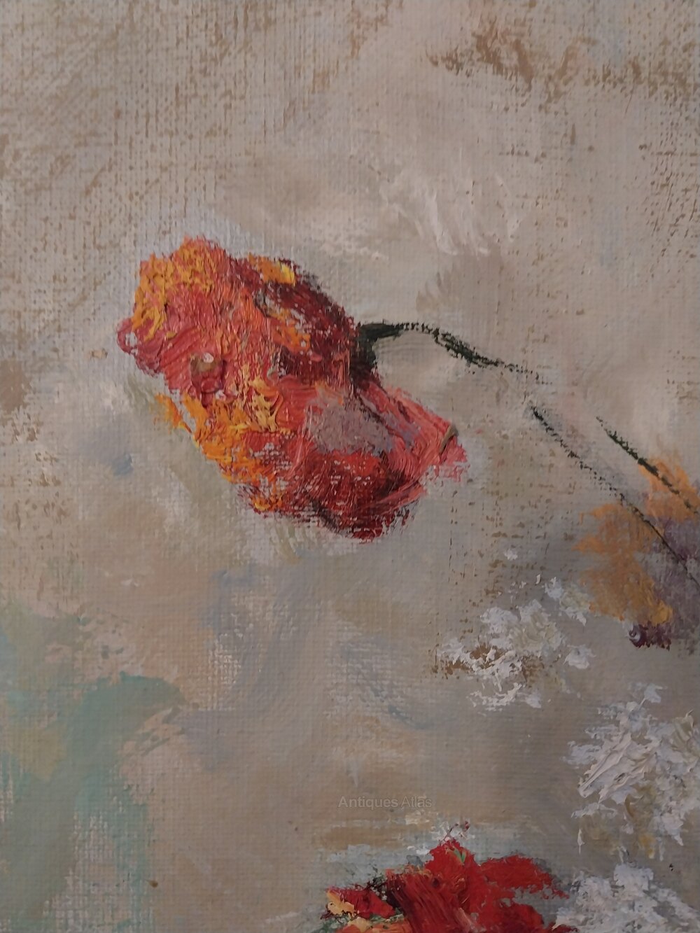 Still life flower painting, a floral impressionist Oil on canvass by Italian artist Giuseppe Cavasanti he attended Alberta Academy under the guidance of Giacomo Grosso.