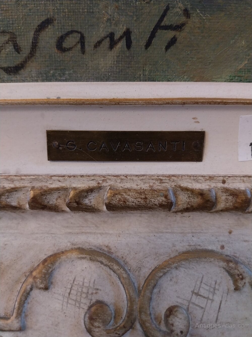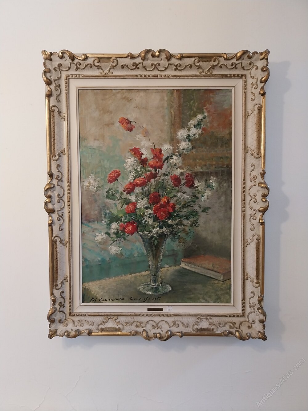 This fabulous still life in original white and gilt frame signed by the artist and also G Cavasanti engraved on the brass plaque.