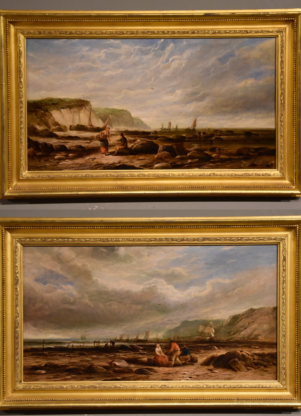 Oil Painting Pair by George Dodgson Callow "On the Isle of Wight" 1829 - 1875 Liverpool painter of Coastal marines who painted mainly along the west and south coasts along the west and south coasts. Exhibited at the Royal Academy and Royal society. Both signed and dated 1867 title verso.