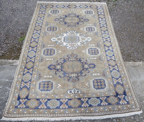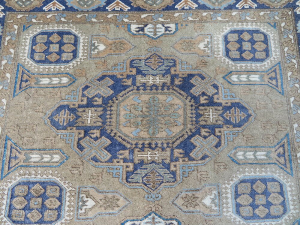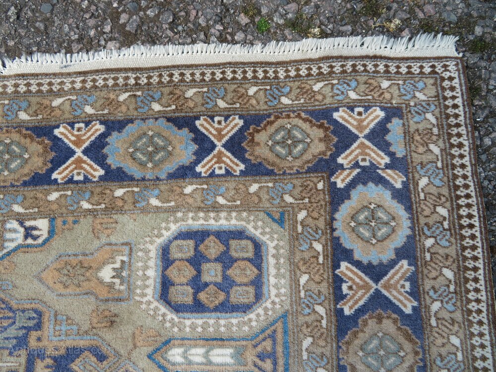 Old ardabil village rug. North persia. 213cm X 145cm. Village weaving in and around ardabil in the most northerly point in persia. Has a strong caucasian influence in it's overall design. Soft coloured with a fine weave. Minimal even wear. Ends and sides secured. Just under 7 foot by 4 foot 9 inches. 213cm X 145cm. At widest points. Size excludes fringes both ends. Fine wool pile hand knotted onto fine cotton foundations. Only £375 gbp. U. K post £20. Ztr 130. Now selling very affordable rugs at sensible money.