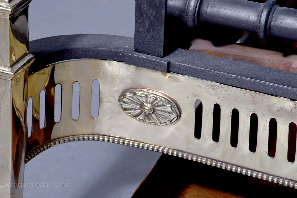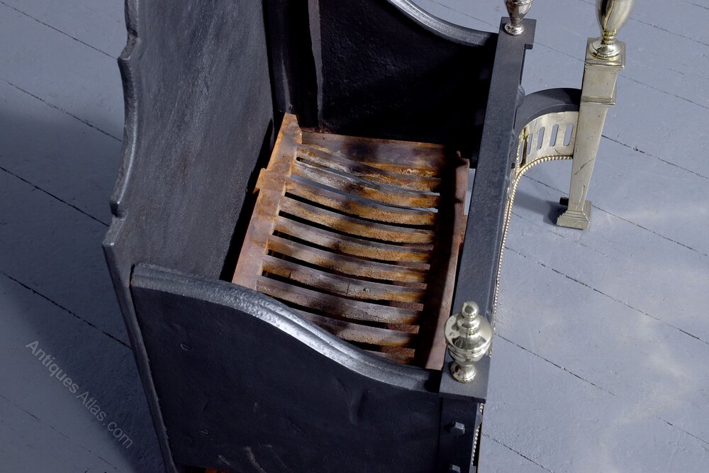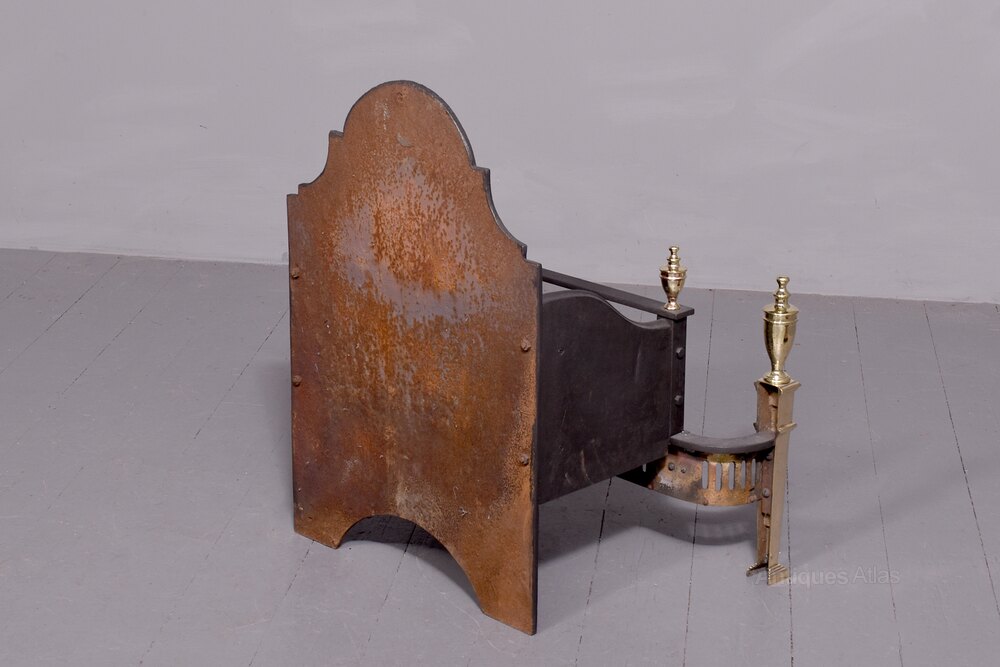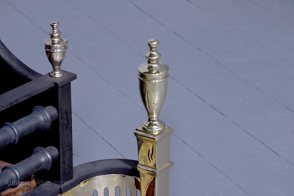 Circa 1880. Outstanding brass and steel Adam-style fire basket. The basket with an arched back and fluted curved sides, with brass finials to the front and ring turned bars. Standing on a lovely panel-style brass concave base with fluting and applied paterae. The sides with turned finials on square tapering bases on stepped bases. Fully restored.