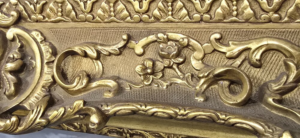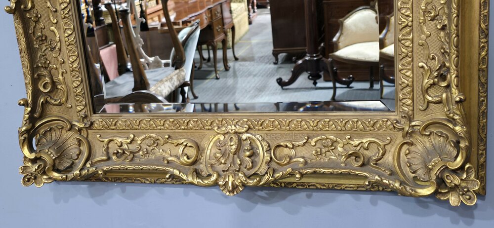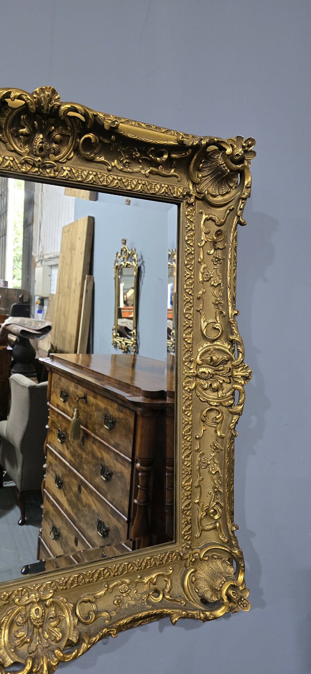 Superb pair large deep gilt frames, with under carving, oil and water gilded, in excellent condition with bevelled mirror plates, in overall excellent condition, can be hung landscape or portrait.