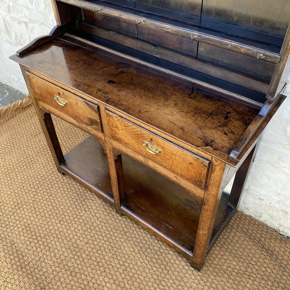A super rare and very sweet little Welsh oak Pot-board cottage dresser of under 4ft in length from the Carmarthenshire/Cardiganshire border in West Wales c1760.