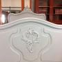 The kingsize bed has a swept headboard and footboard with carved detailing.