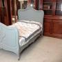 The bed has been painted in a plummet grey, slightly shabbied and given a clear wax finish.