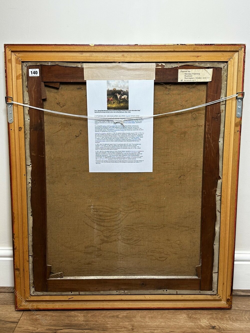 Framed and conserved by Mendip Framing, Bristol (label verso)