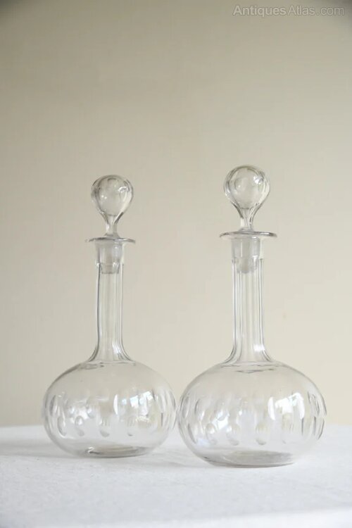 Pair Antique Globe Decanters