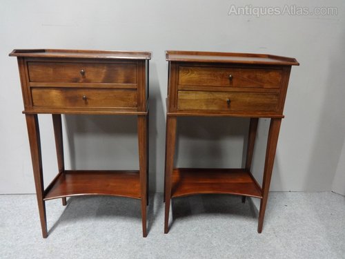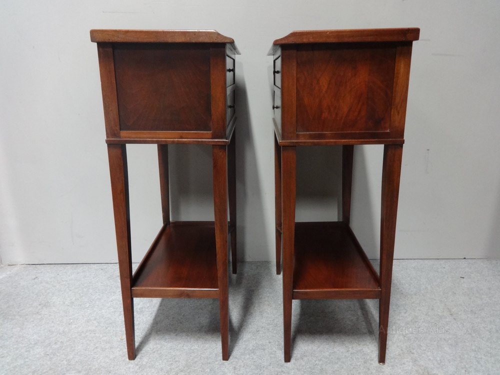 Pair French Mahogany Bedside Lamp Chests of Drawer