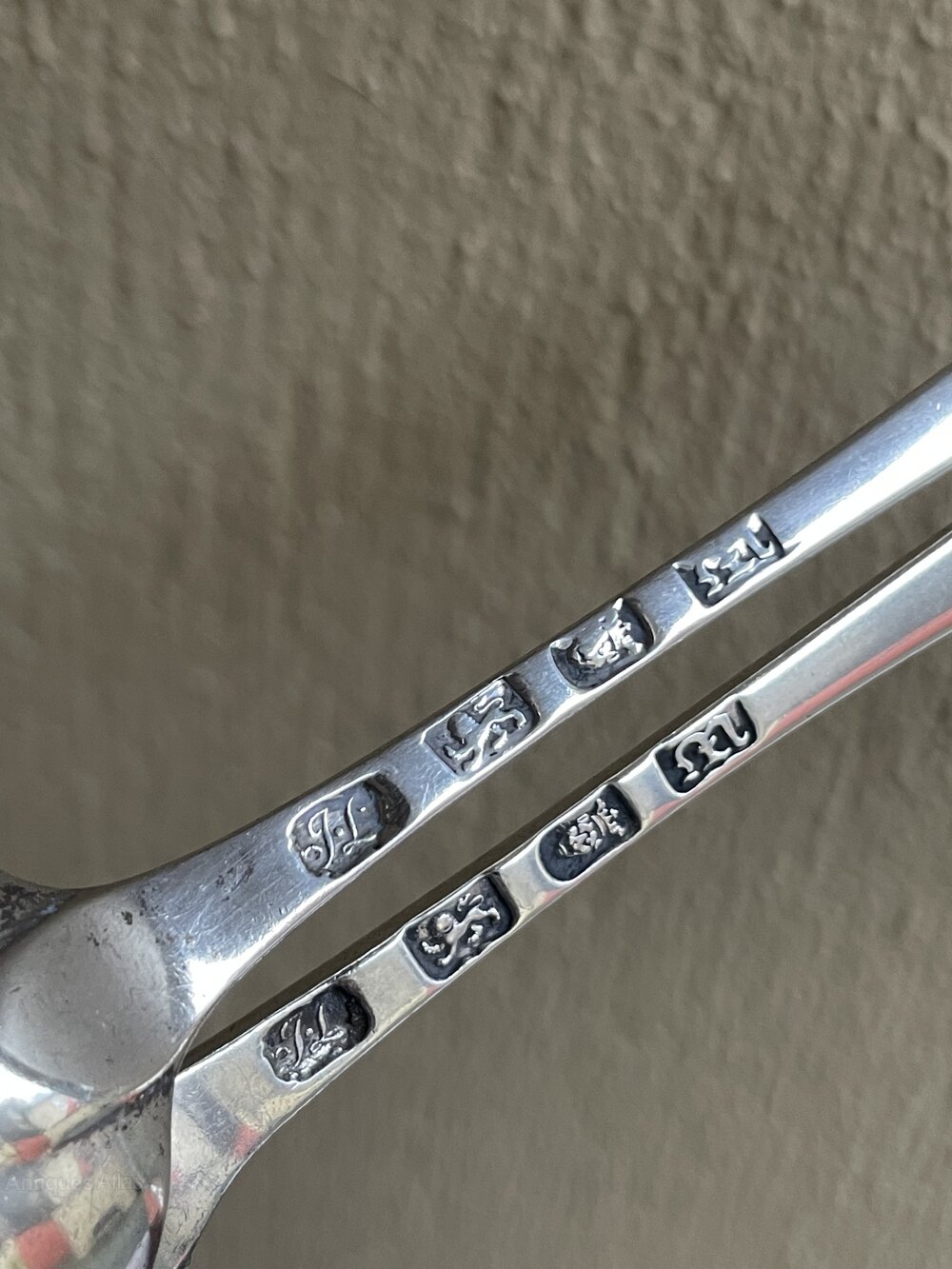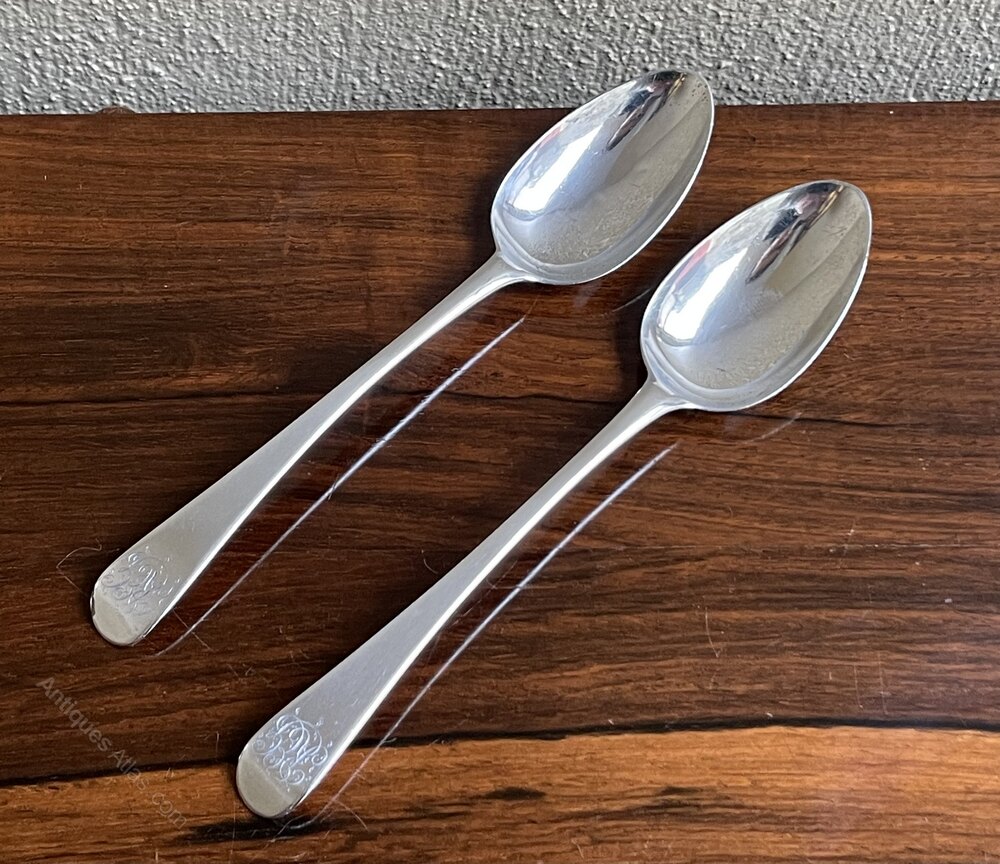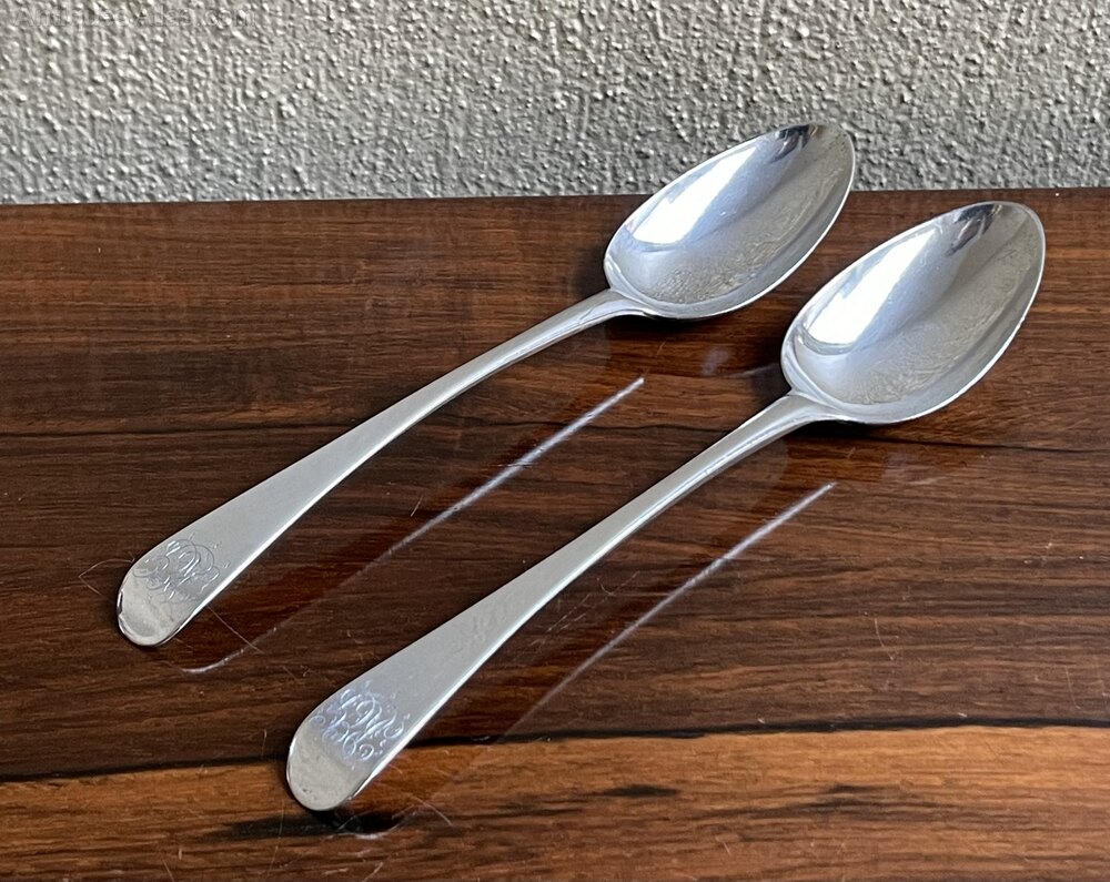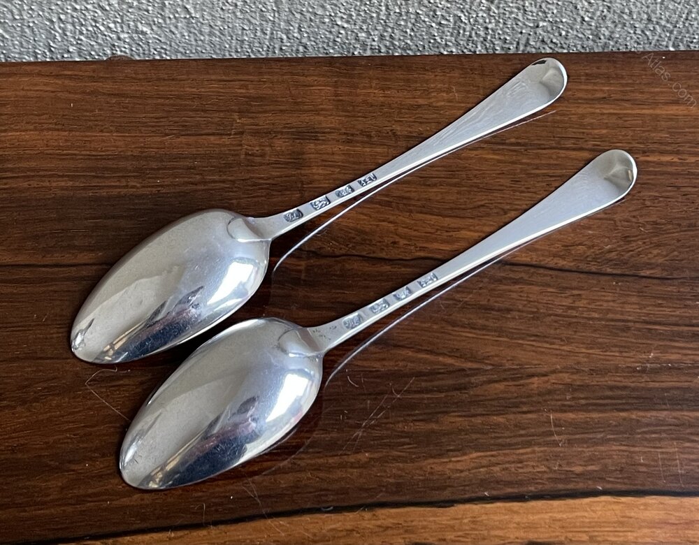 A good pair of George IIl silver table spoons, hallmarked London 1767.