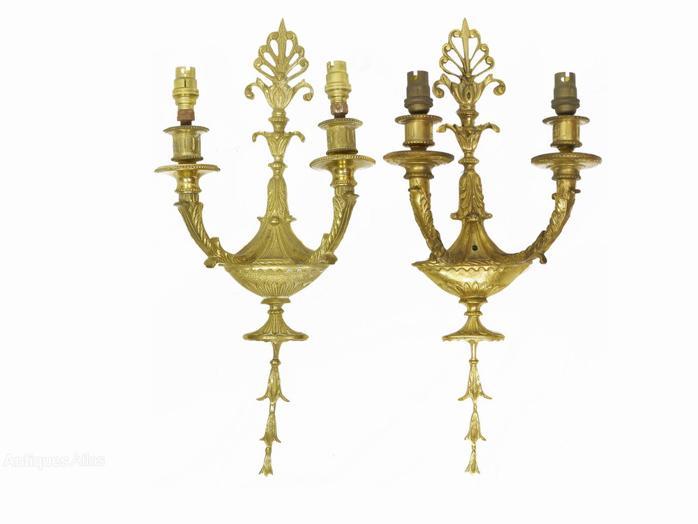 English Pair Of Twin Arm Antique Wall Lights