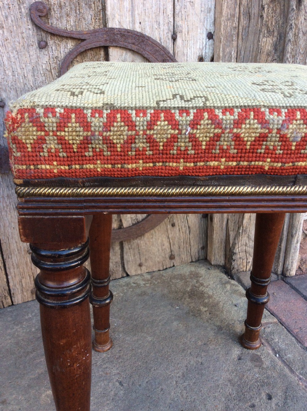 Large Antique Fireside Stool, English, Walnut