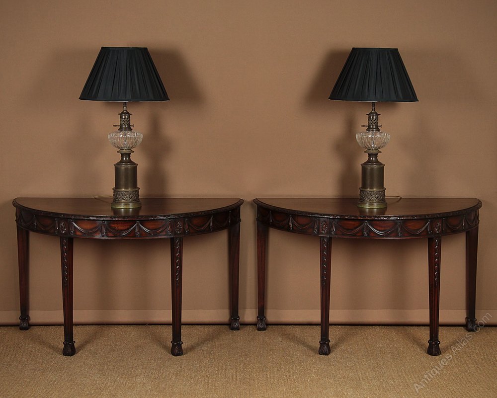 Antique Mahogany Demi Lune Shaped Console Tables