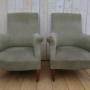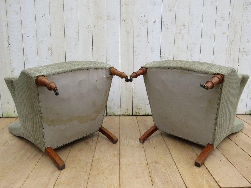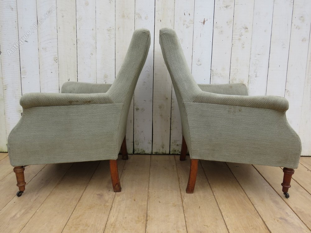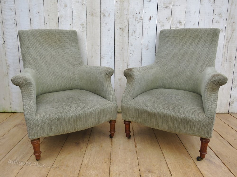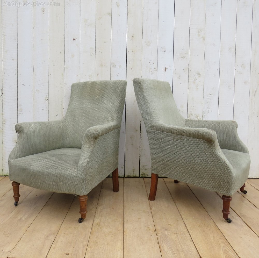 Shapely pair of sound, sturdy and sprung 19th century French high back Napoleon III armchairs on oak legs for re-upholstery.