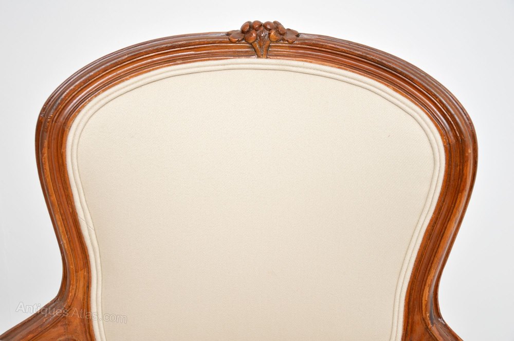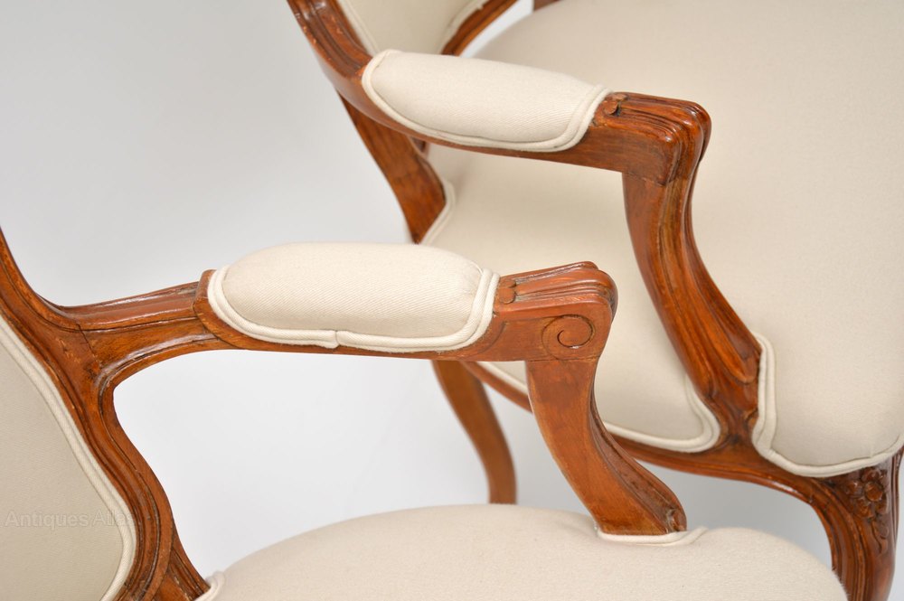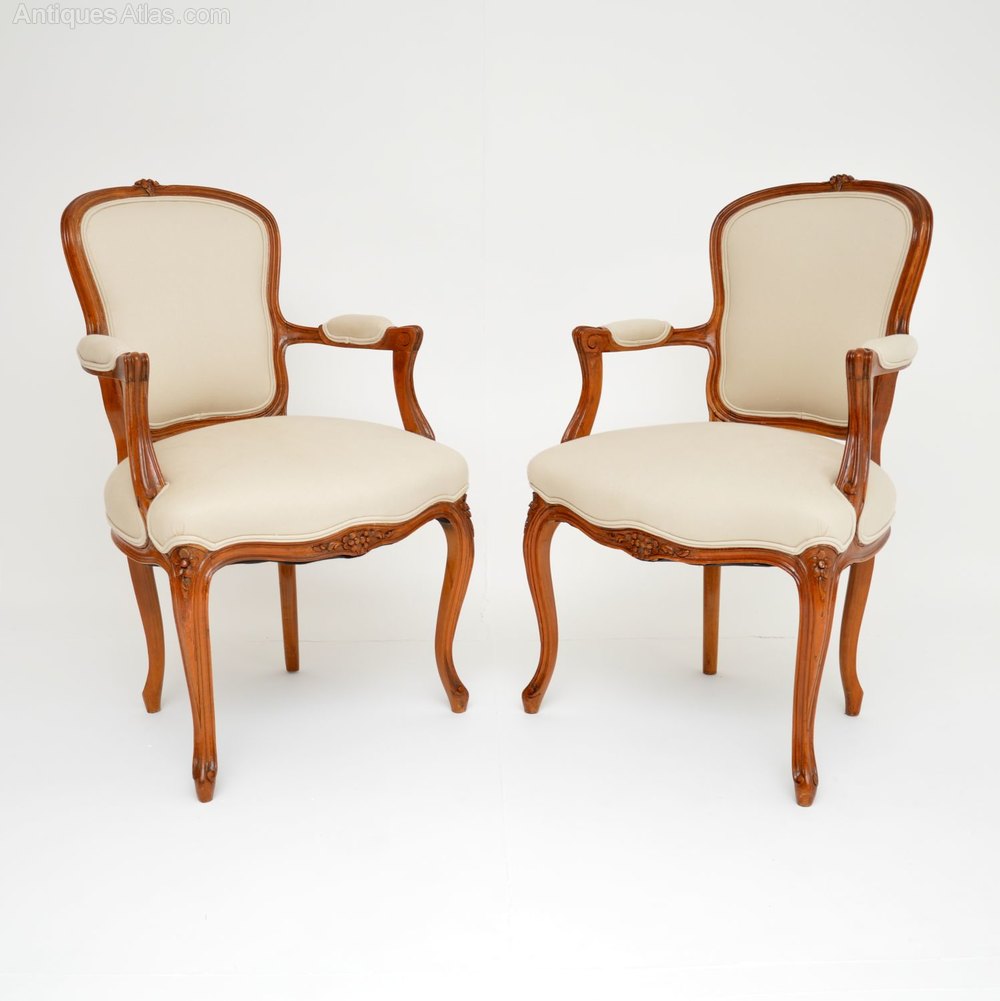 A beautiful pair of antique French salon armchairs in solid walnut, dating from around the 1920-30’s period.