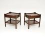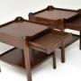 They are of super quality and have a very practical design, with generous proportions. The tops have raised edges with a single drawer in each table. There is a useful lower tier and they have polished backs, so can be used as free standing items.