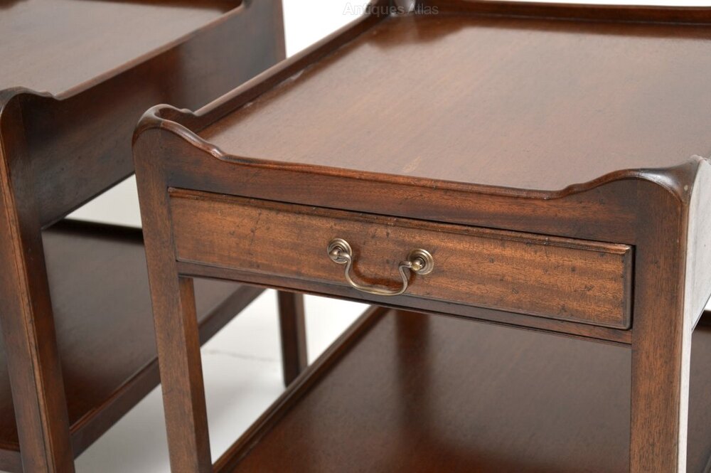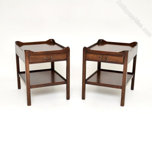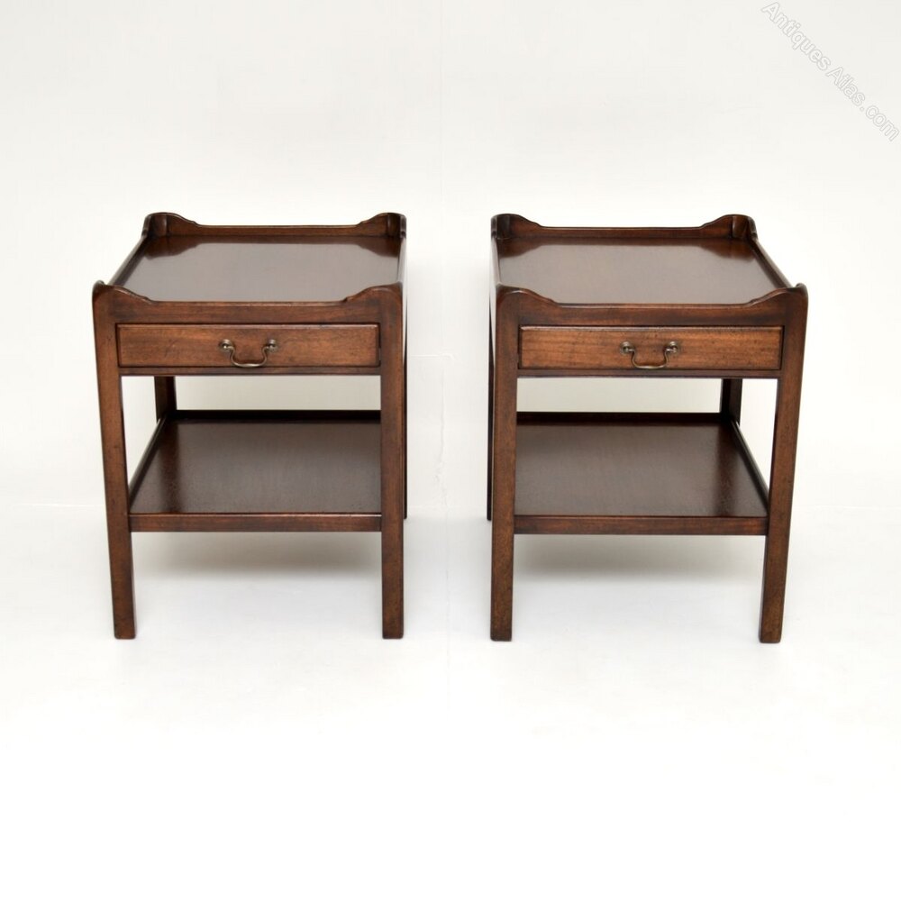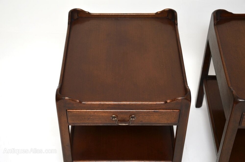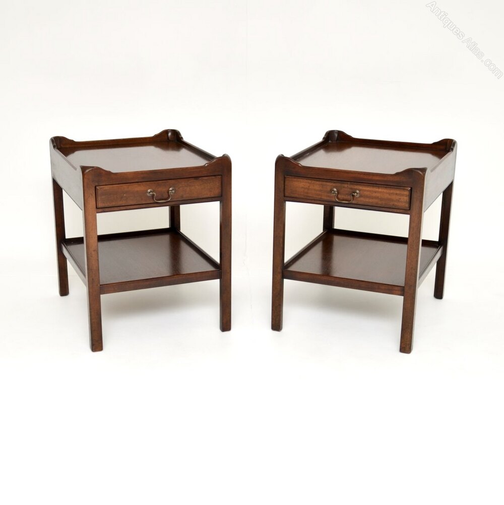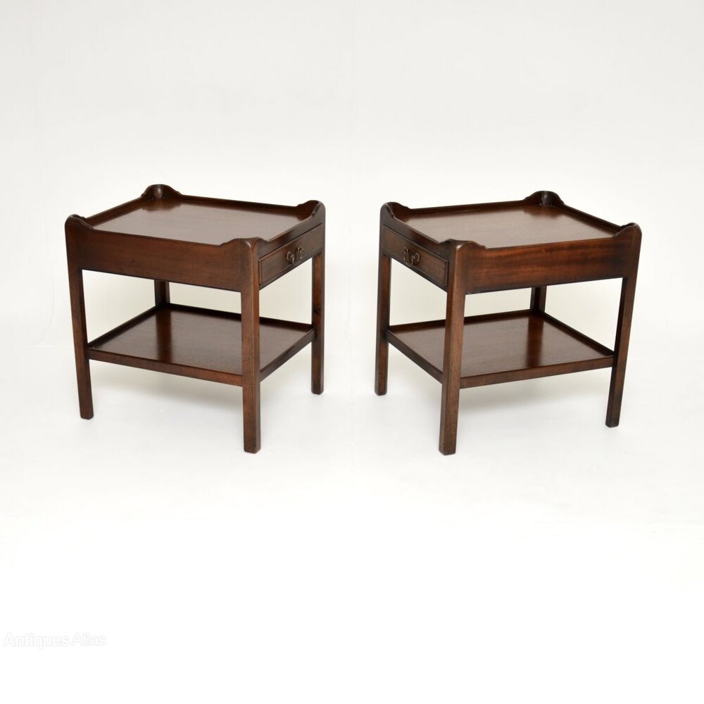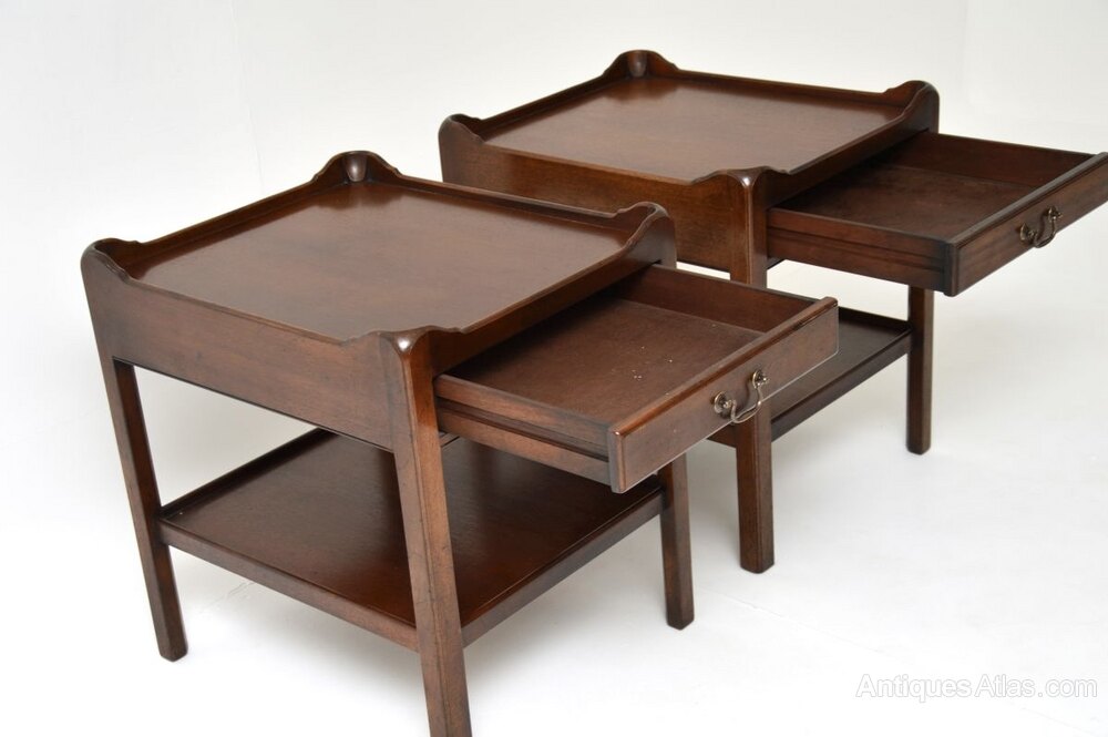 A very well made and useful pair of antique Georgian style mahogany side tables. They were made in England, and date from around the 1950’s.