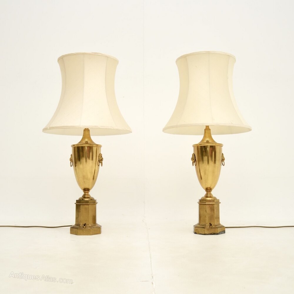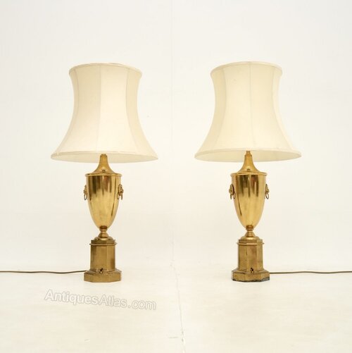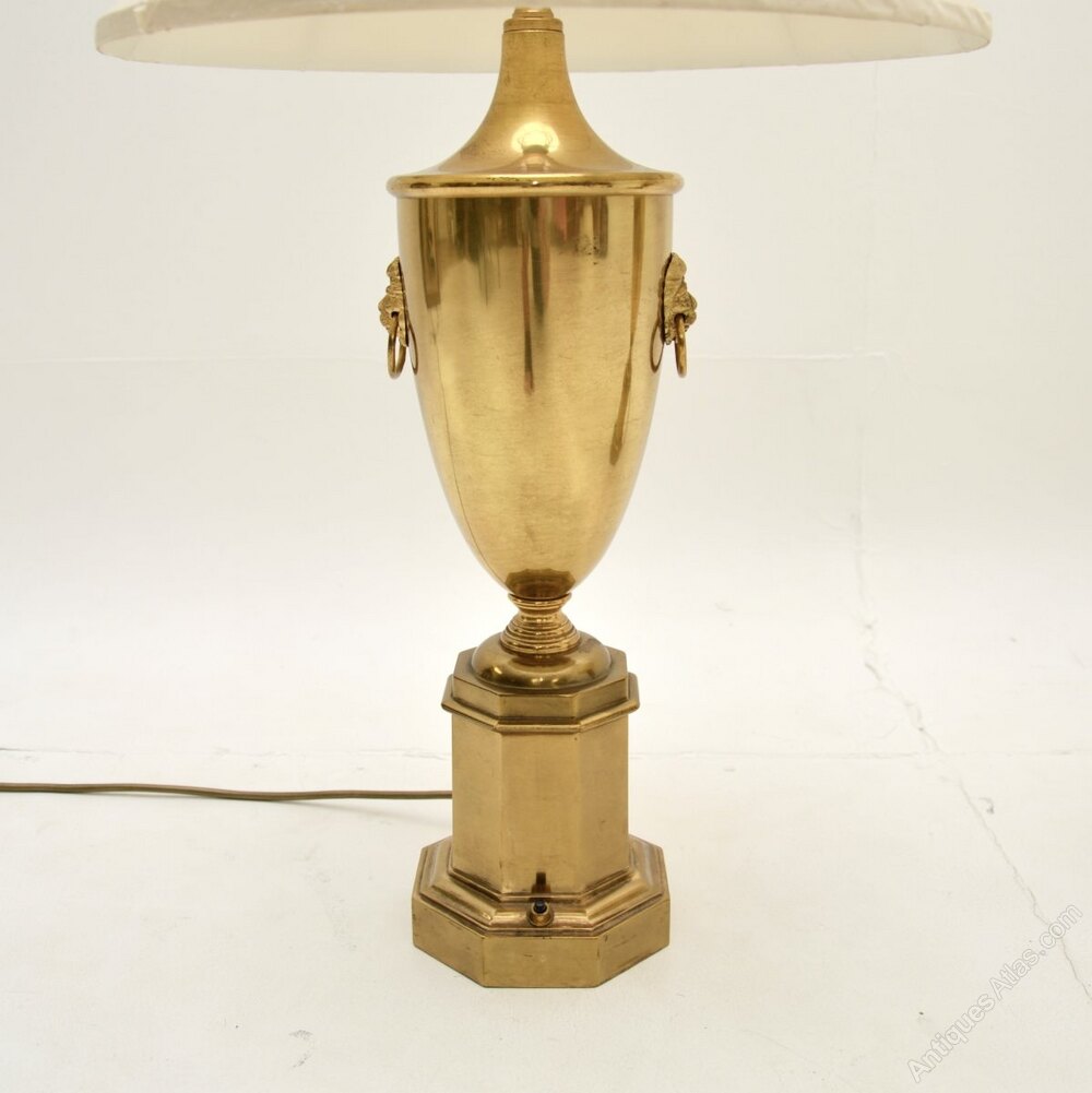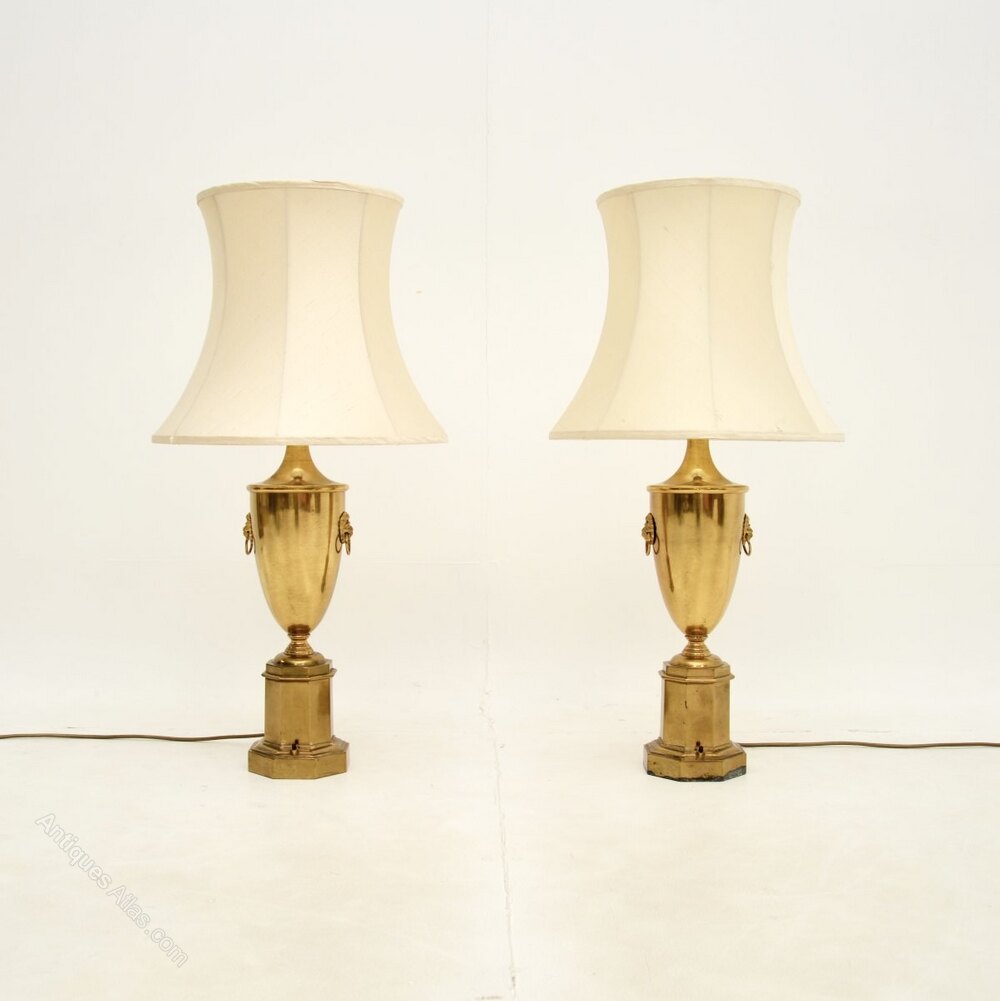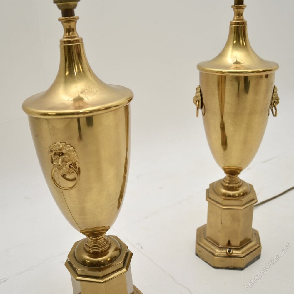 A stunning pair of antique neoclassical brass table lamps. They were made in England, they date from around the 1930’s.
