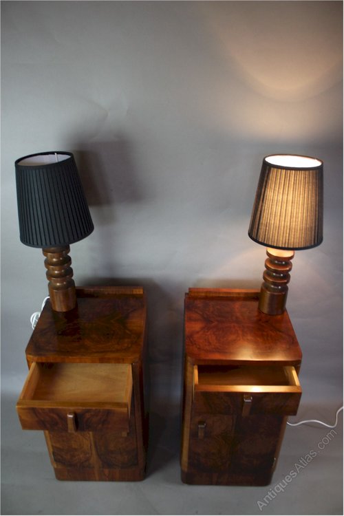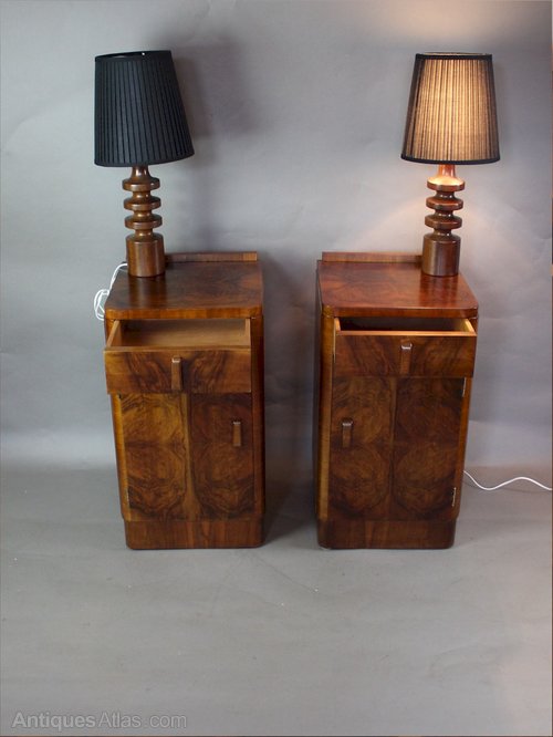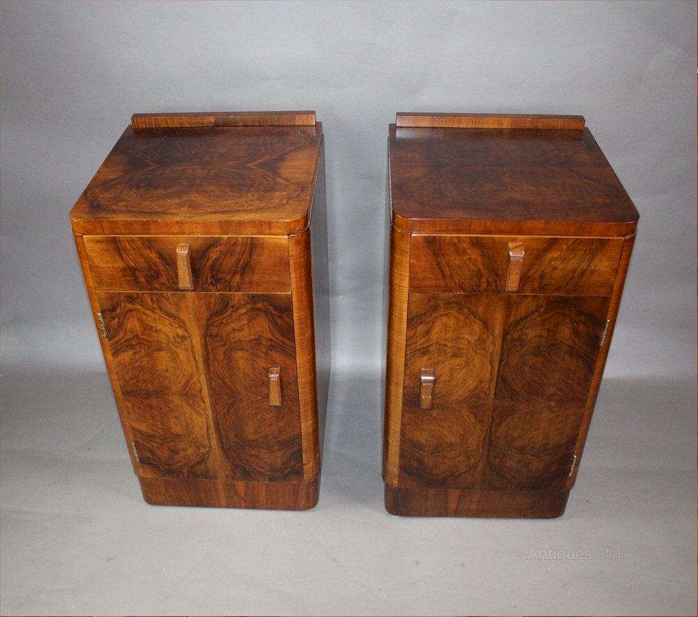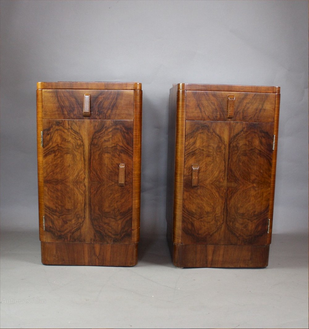 Pair Of Art Deco Burr Walnut Bedside Cabinet. C193