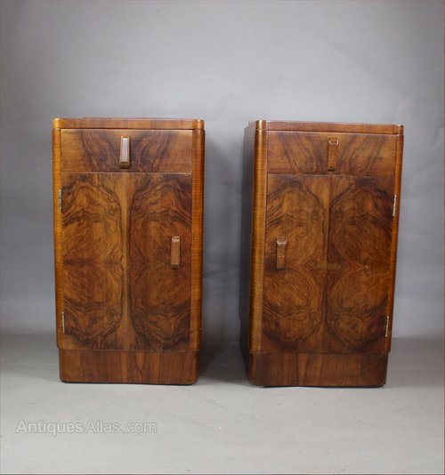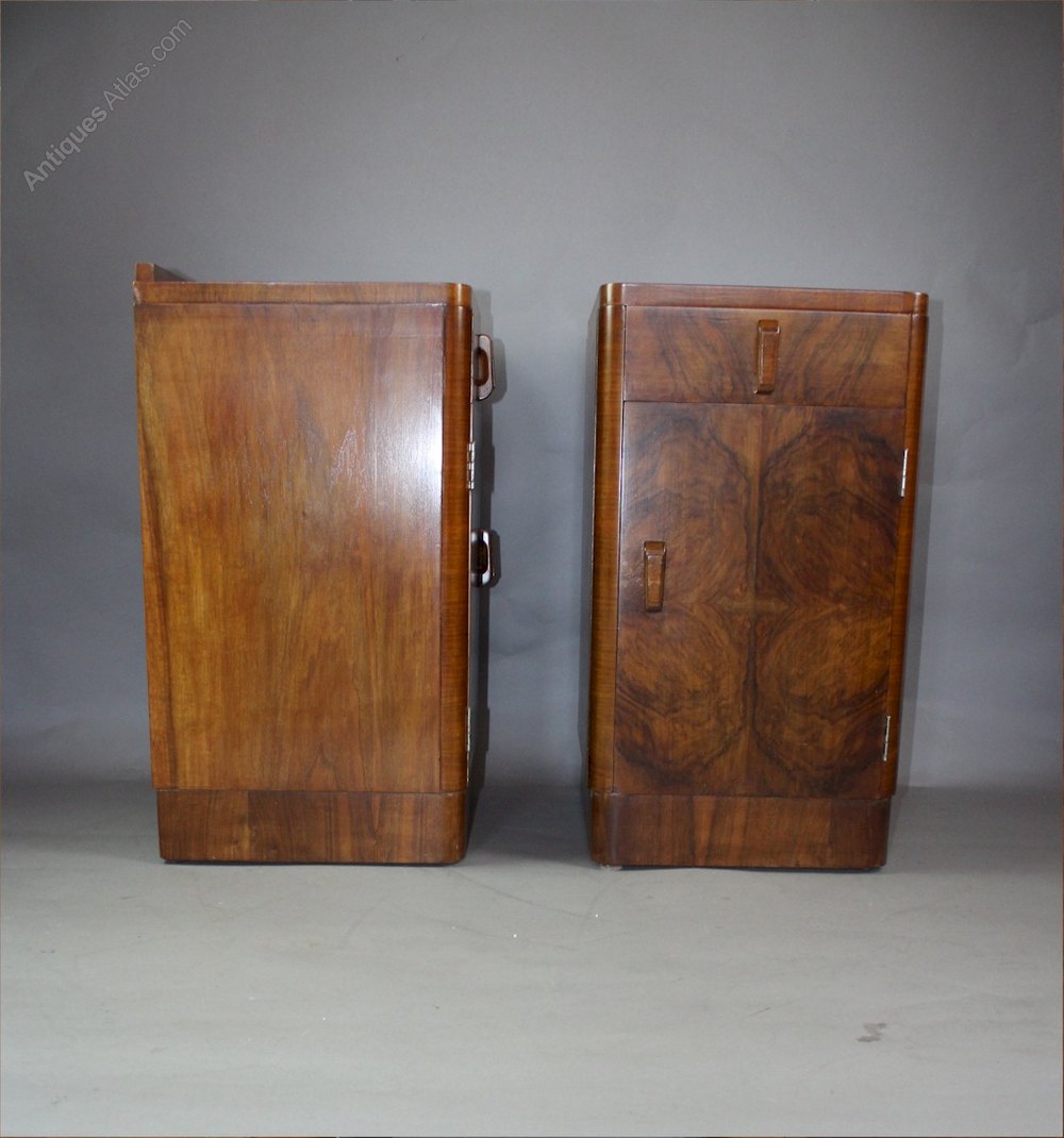 Art Deco Walnut Bow Front Bedside Cabinets
