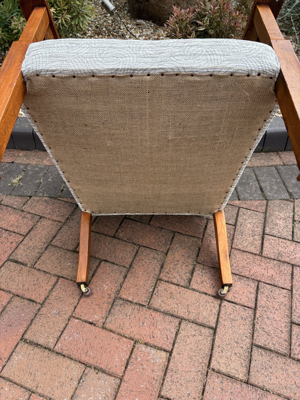 Arts & Crafts Oak Reclining Armchair With Footrest