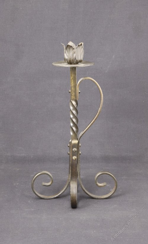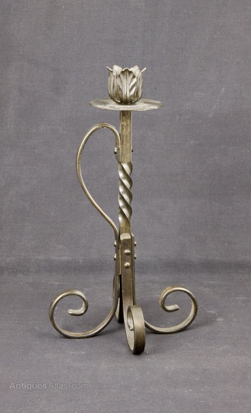 Pair of Arts and Crafts Steel Candlesticks c1910
