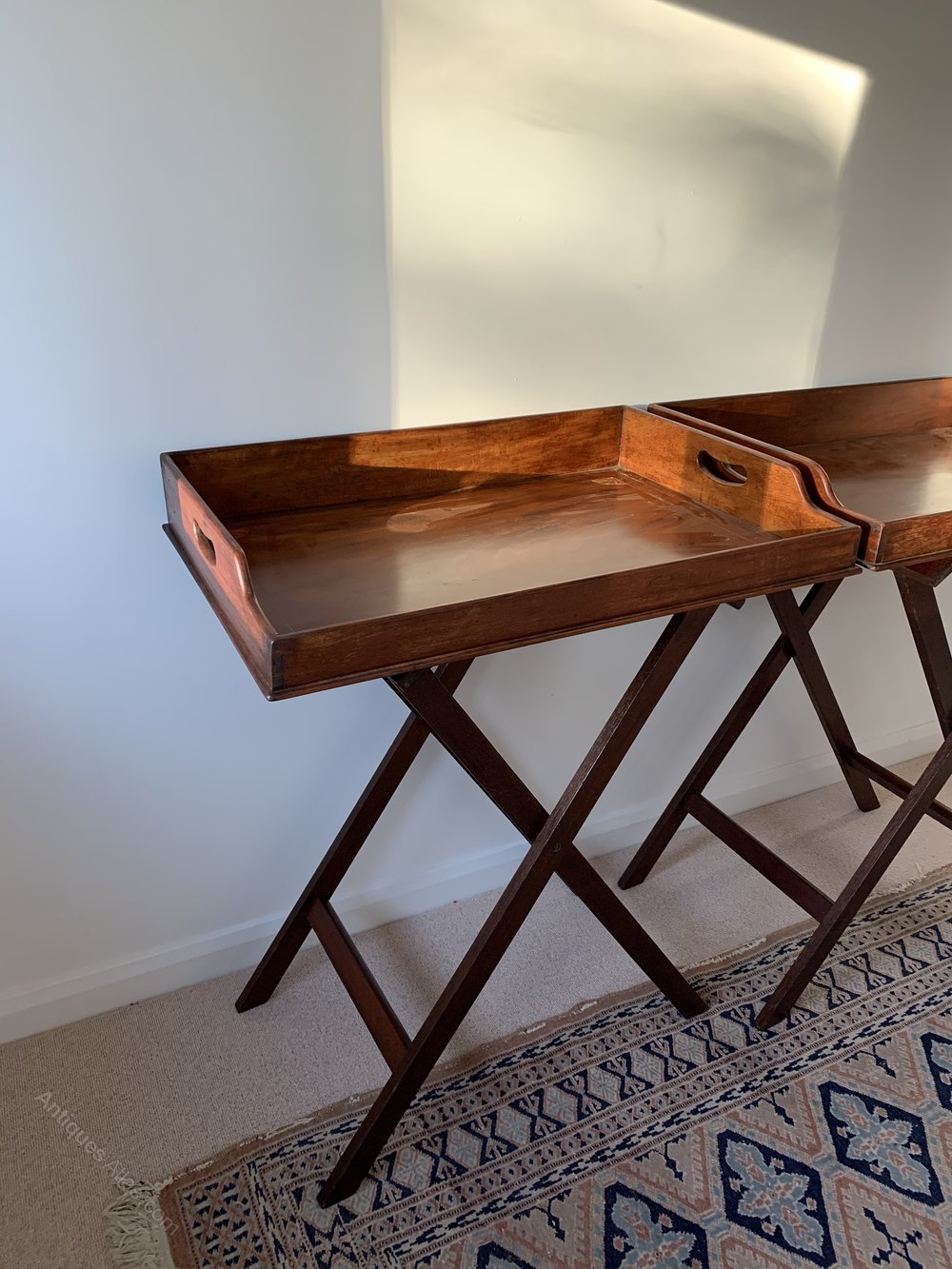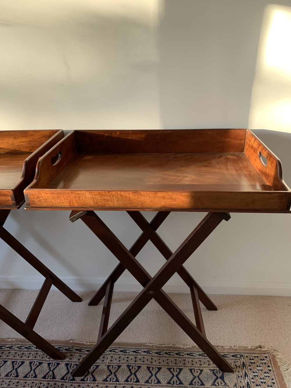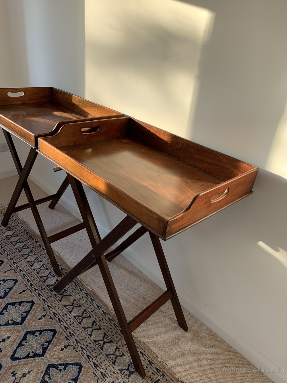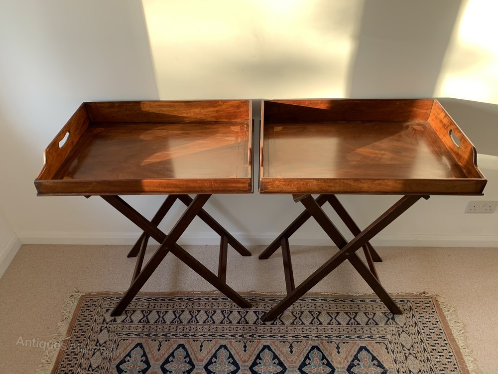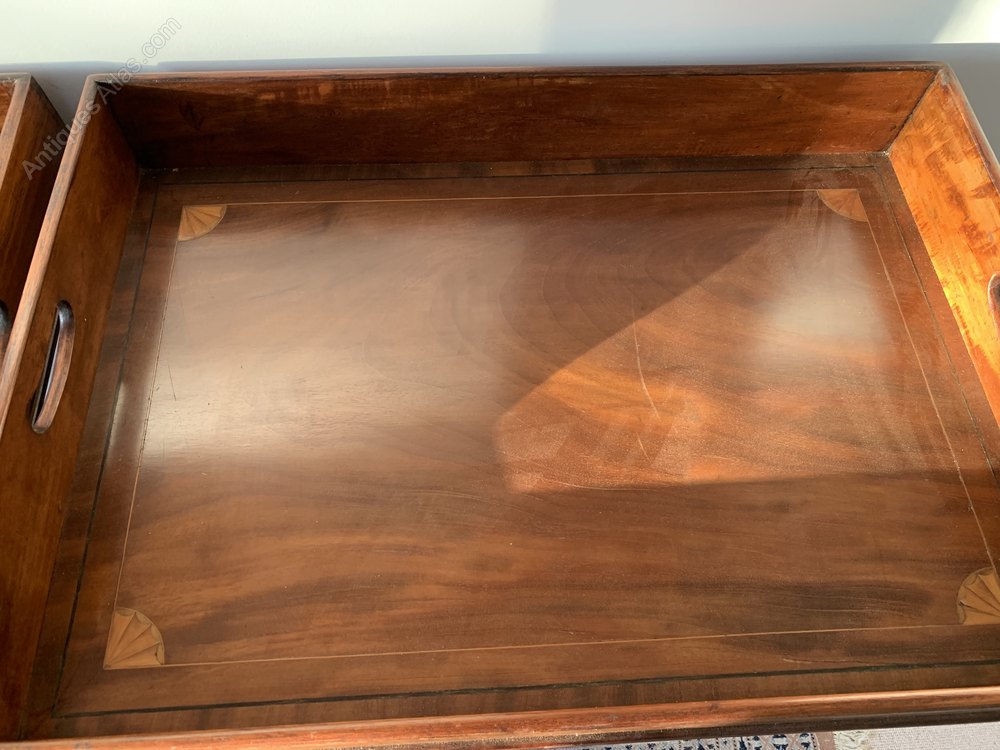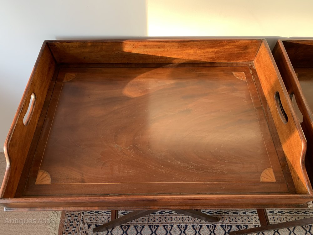 Great Pair of late 19th century mahogany and inlaid butlers trays with stands
