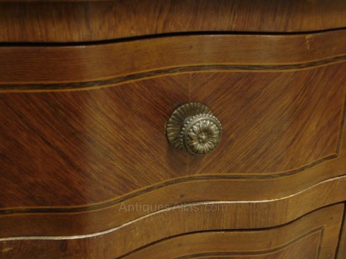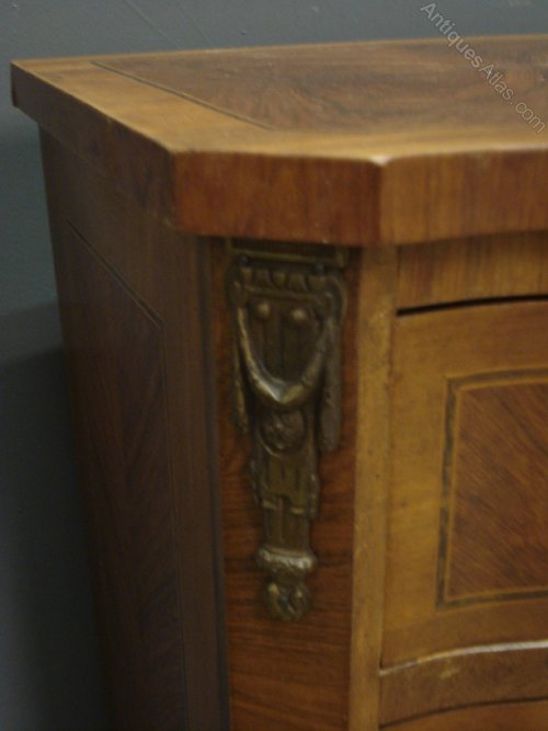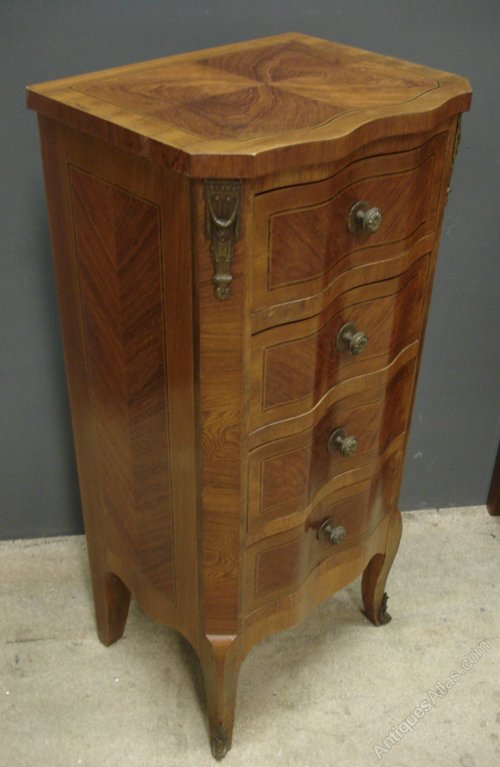 Ref 6017 - Pair of inlaid veneer 4 drawer cabinets with original metal fittings. Circa 1900.