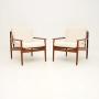 A stylish and extremely well made pair of Danish vintage teak armchairs by Arne Vodder for Glostrup, dating from the 1960’s.