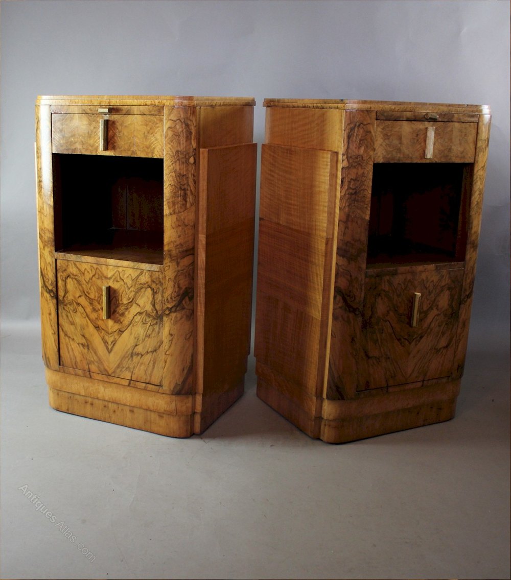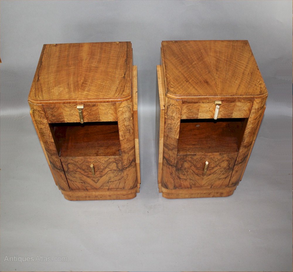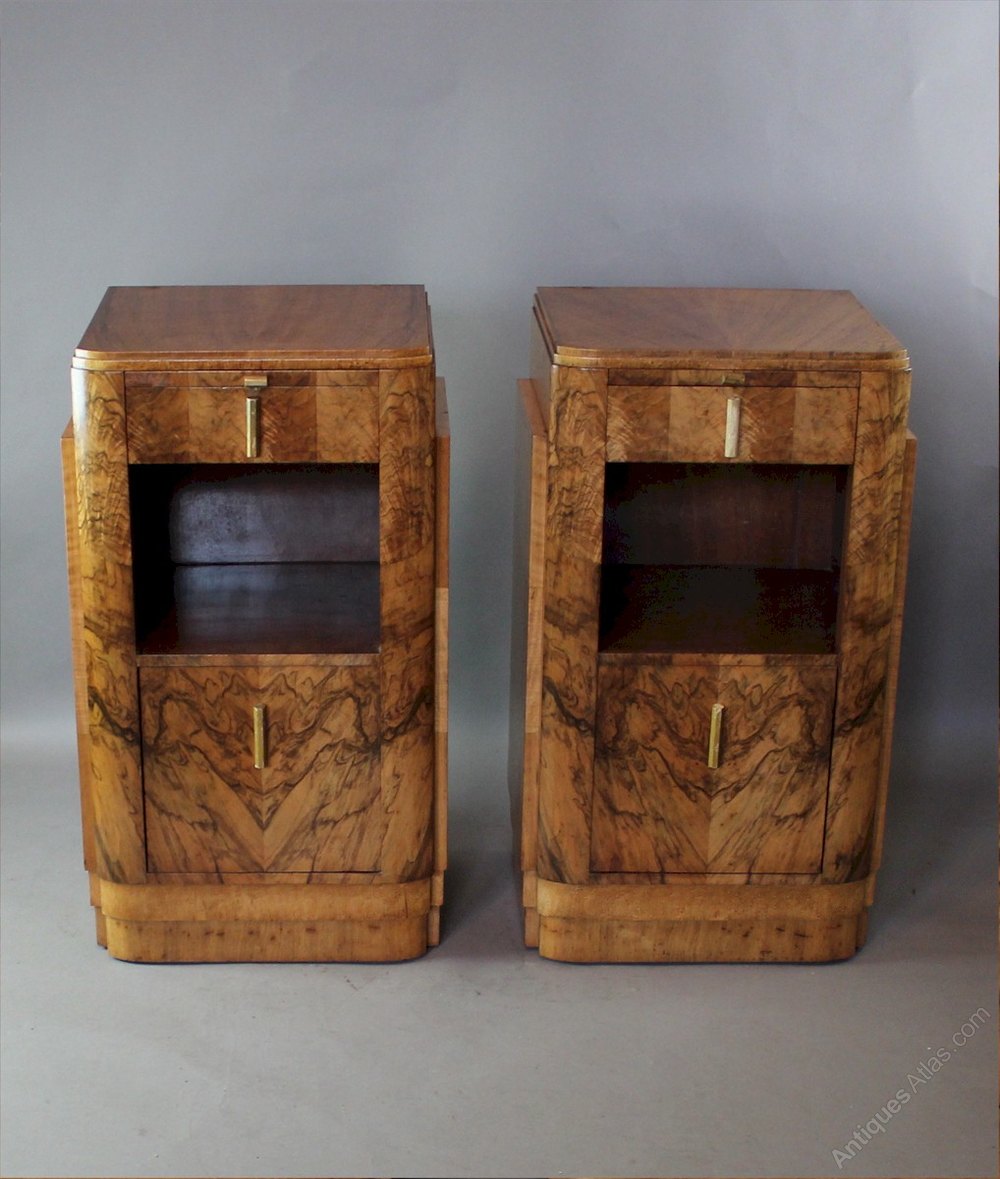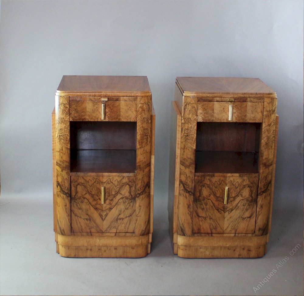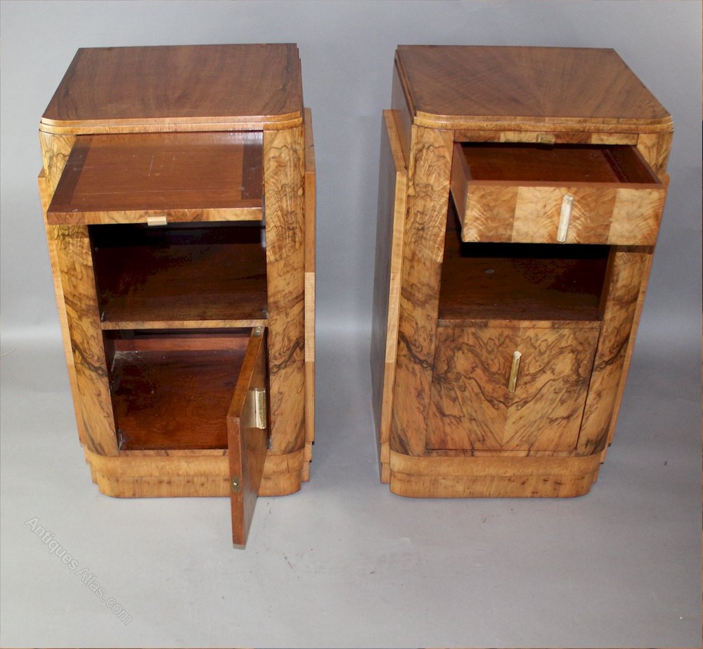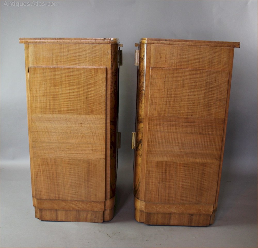 Pair of Art Deco Burr Walnut Bedside Cabinets