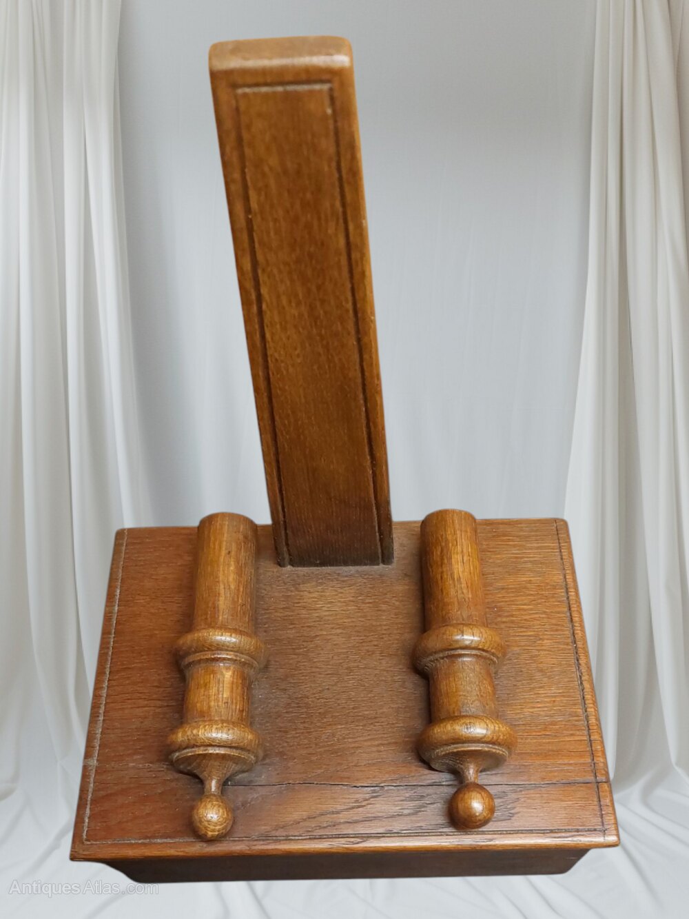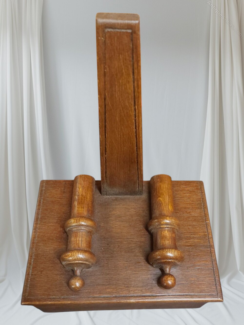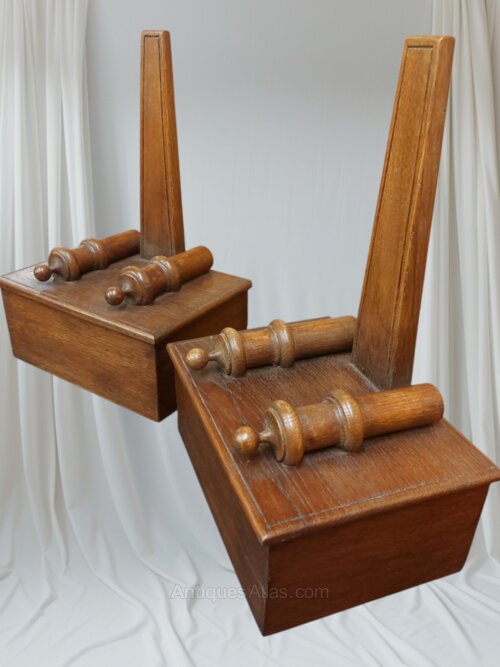 A quality matching pair of Gillows style Edwardian weighted plate/plaque stands. Unusually made in Oak (usually mahogany). In very good original condition. Good size at 10" wide x 7" deep x 14" tall and weighing 5 kilos each. Polished and waxed ready for use. Circa 1910.