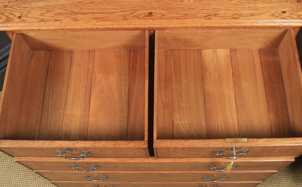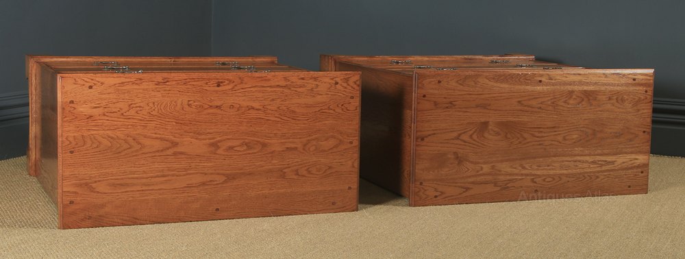 The chests boast a lovely golden oak colour. They have a fantastic colour and patination this can only be achieved through age and years of care and cleaning they have received.
