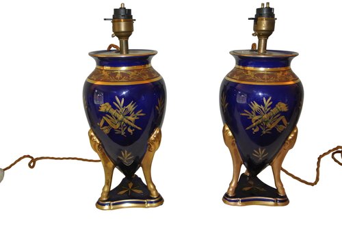 Beautiful Pair Of 1930's French Art Deco Vase Lamps By Pinon Heuzé. The Lamp Can Be Taken Out If Not Needed