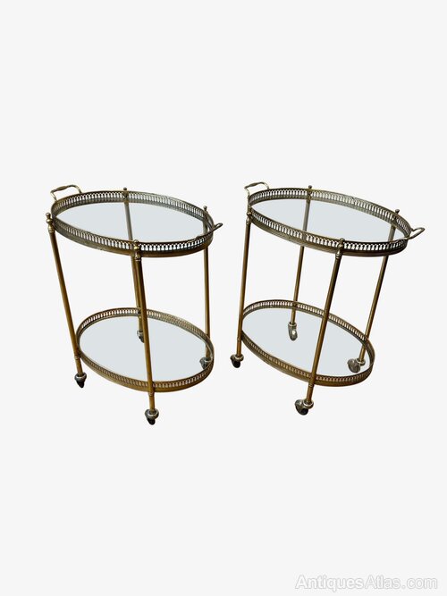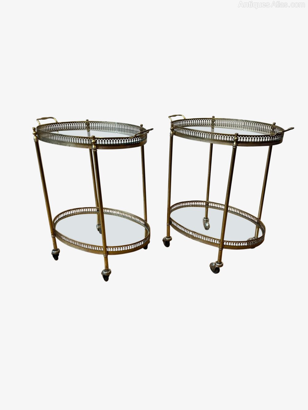 Pair of French gilt brass rolling side tables