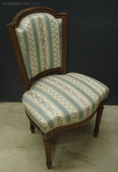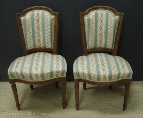 Ref 3917 - Pair of old French Louis XVI style carved walnut side chairs. Circa 1900.