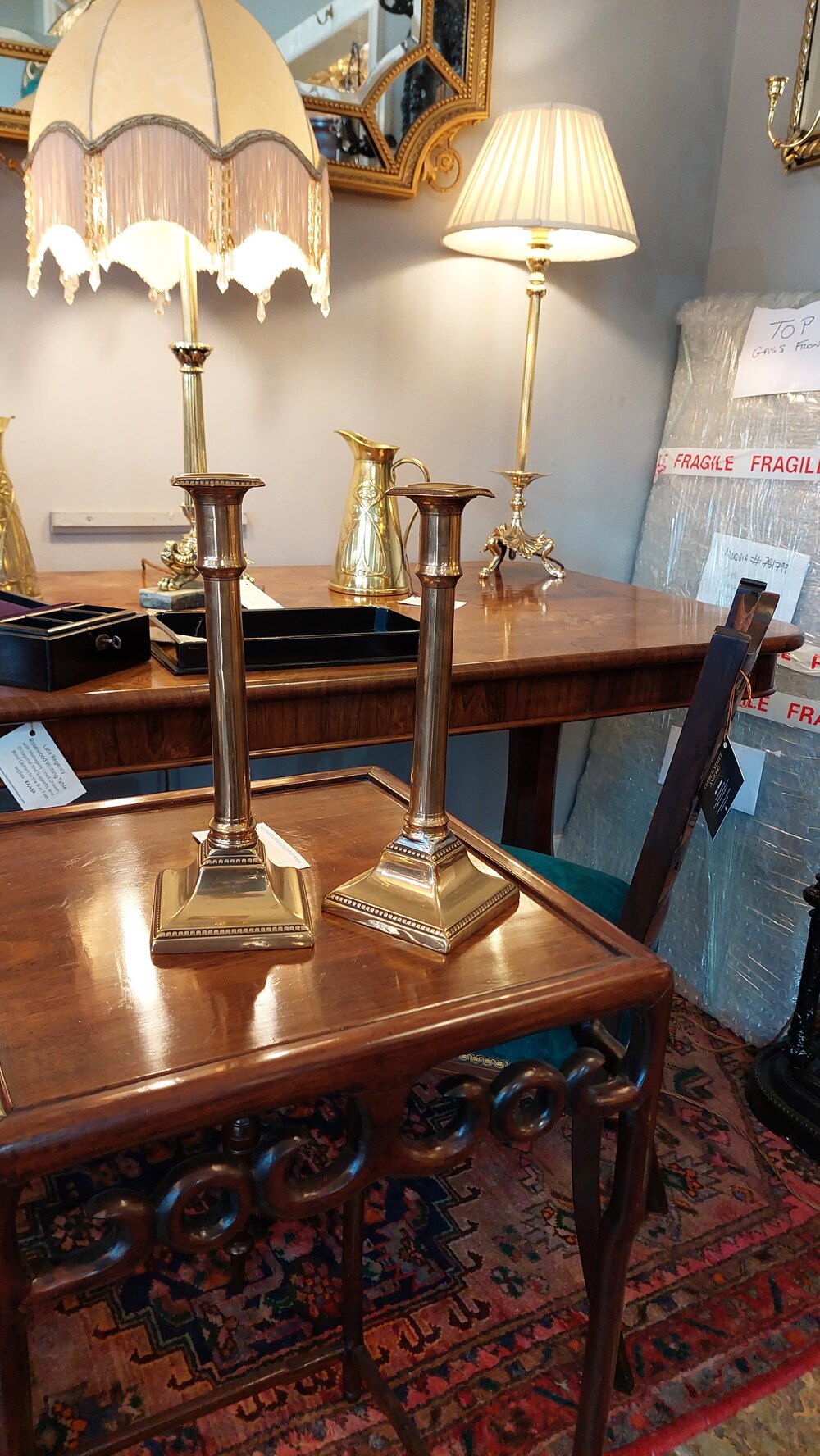 Pair of Brass Candlesticks with Glass Chimneys
