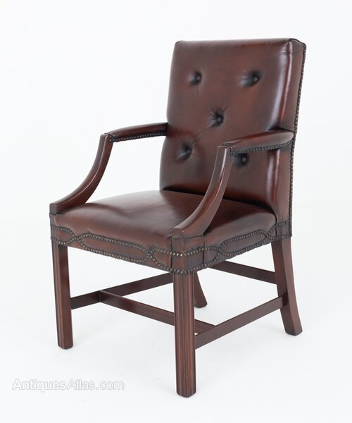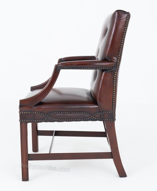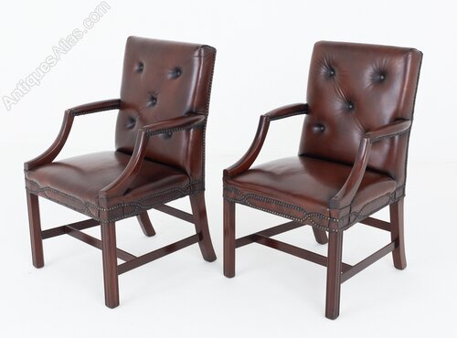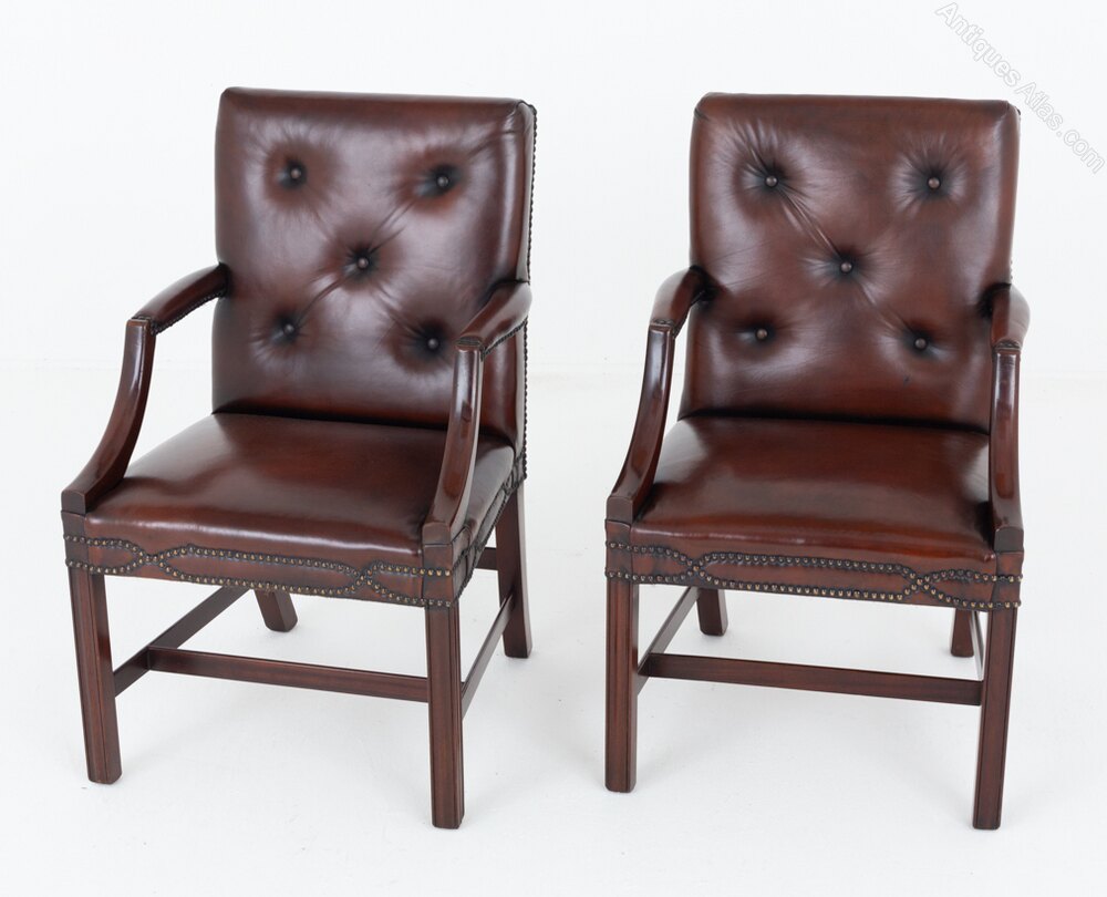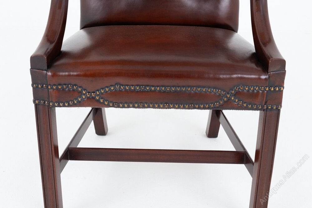 The Chairs Feature Shaped Arm Supports, Deep Button Leather Upholstery and Decorative Stud Work.