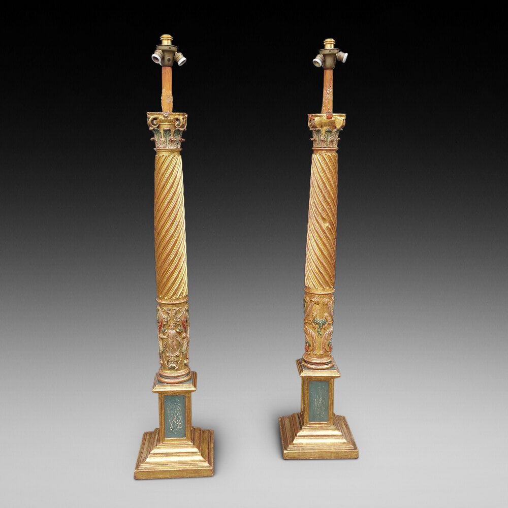 Pair of Italian 17thC Corinthian Column Lamps