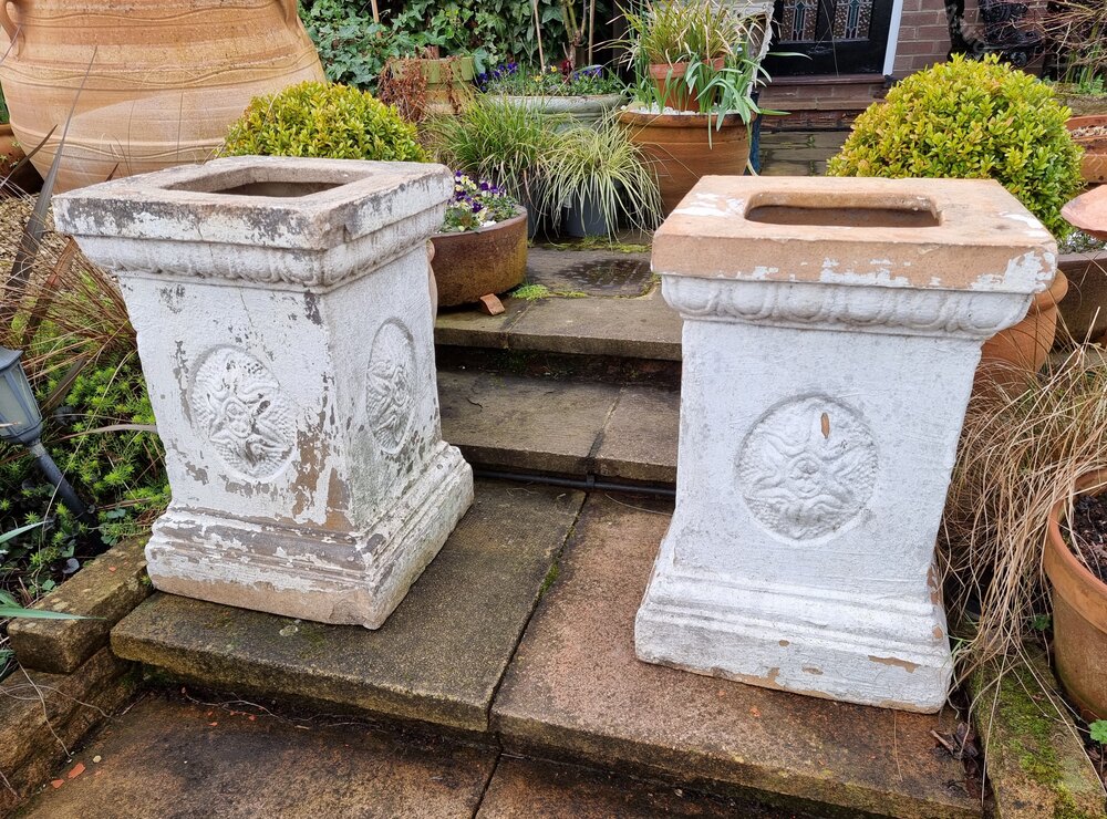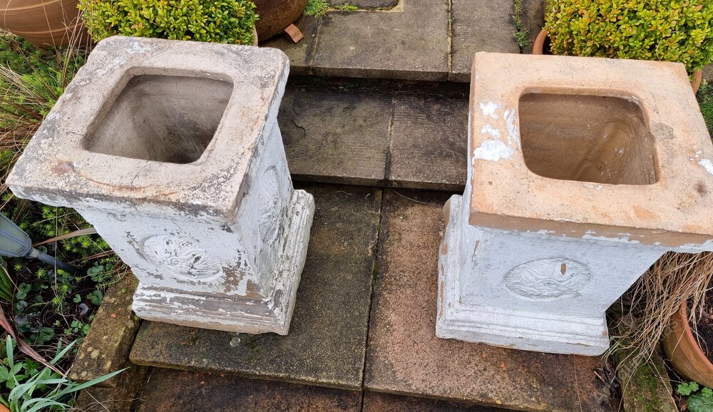 19th Century Scottish Fire Clay Pedestals (probably Dunfermline), large size, would accommodate large urn or other garden statuary. Extremely sound, large and heavy, showing handsome normal wear and tear, see photographs.