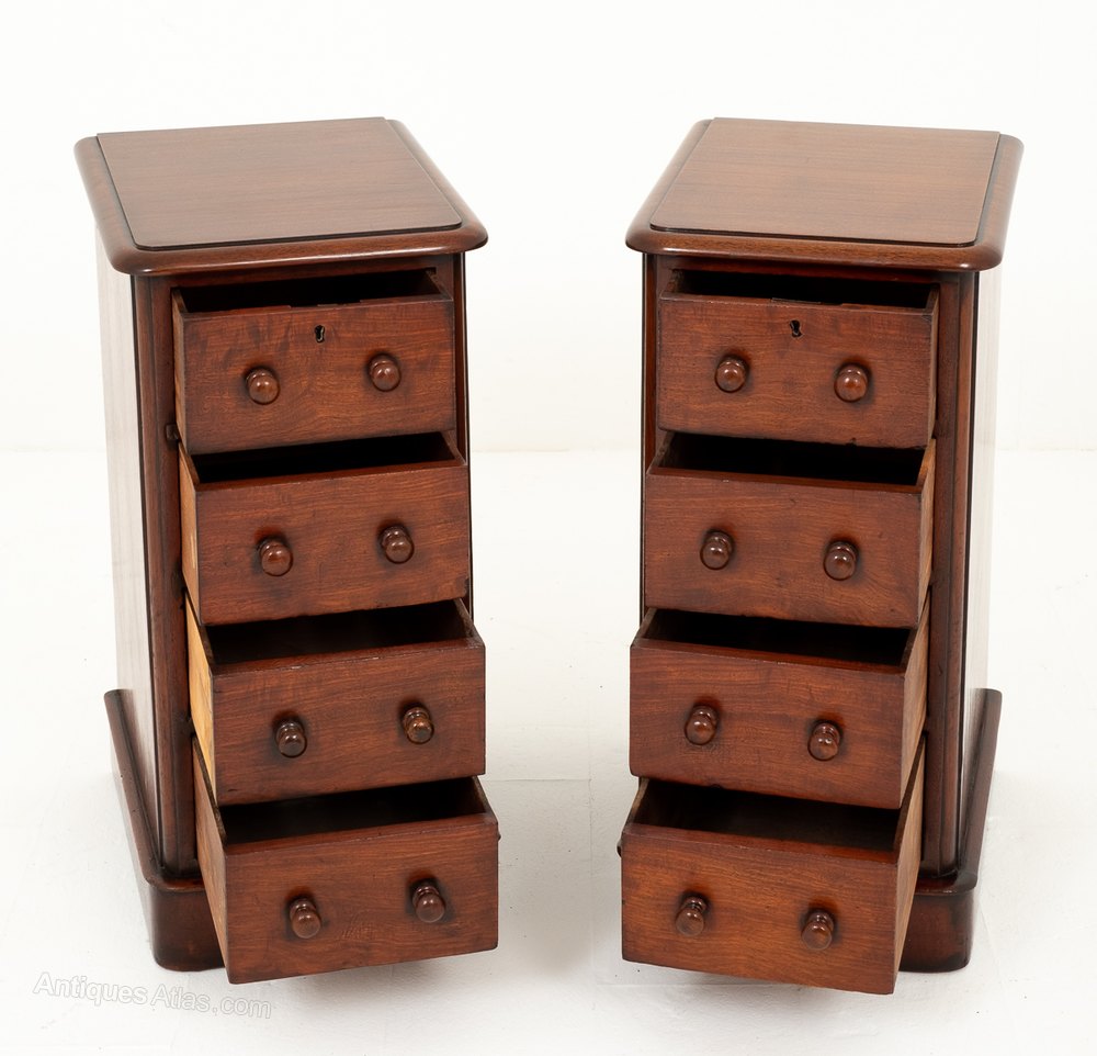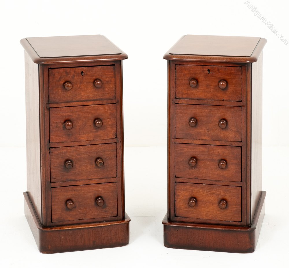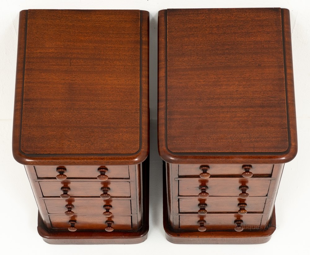 Each Cabinet having a plinth base and 4 Mahogany Lined Drawers with turned Knobs.