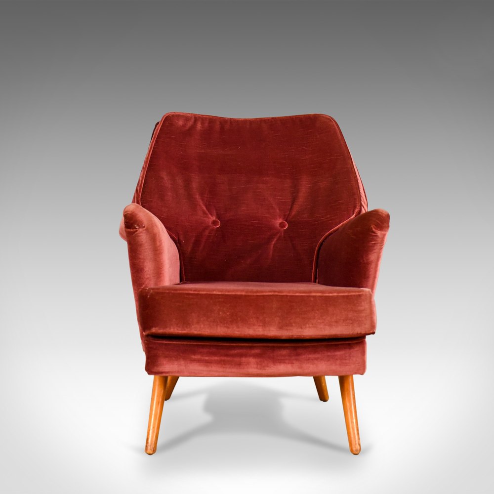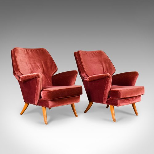 This is a pair of mid-centrury armchairs, vintage club designer easy chairs dating to the 1950s.