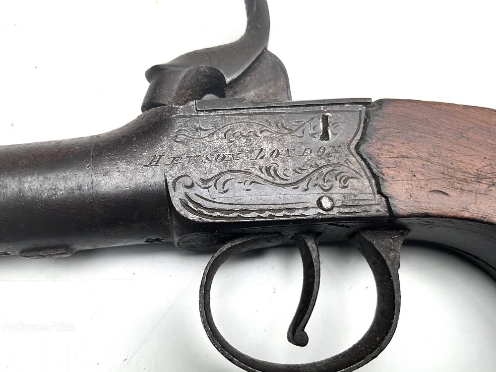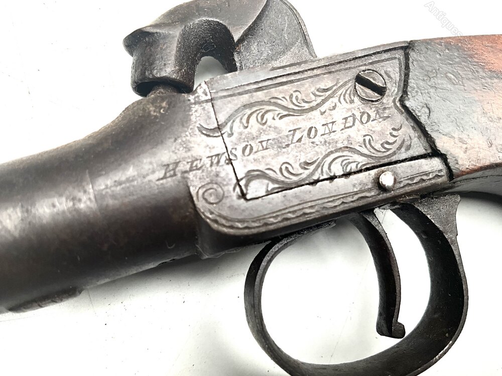 Restoration projects. the matching pair by Hewson of London, both having cocking issues, the trigger springs on both are strong and good, one half cocks the other not at all, length of pistols are 19 cm height 8 cm width at butt 25 mm barrels gauge 1 cm, offering free UK delivery reference DRC8. Tel: +44 7505 165 843 We accept online payments for all our items listed: Bank transfer cash on collection or if wishing over the phone using your debit or credit cards, also doing layby payments plan, or email giving your address details & contact number and we shall send you your items invoice to make payment with your card. Send your request to - john.strong2@gmail.com