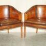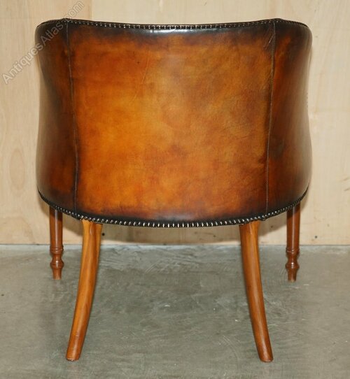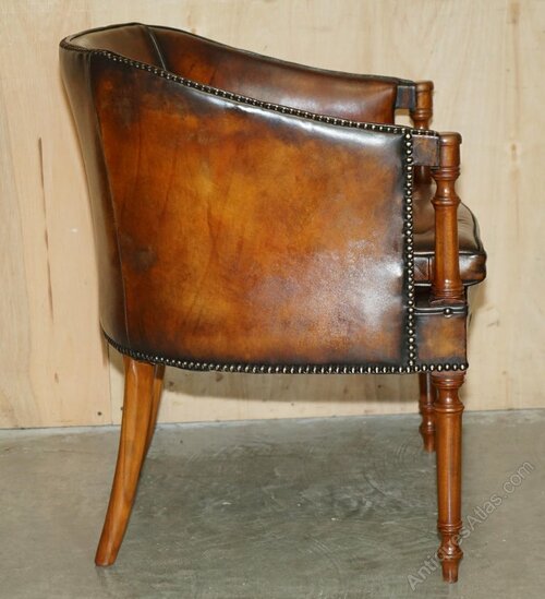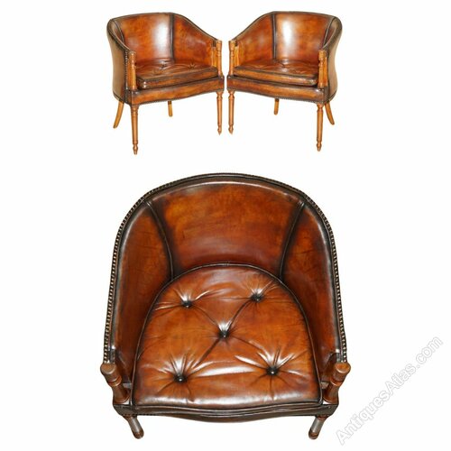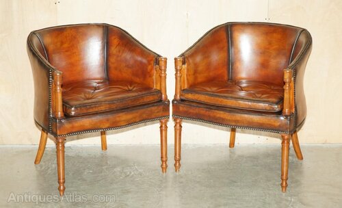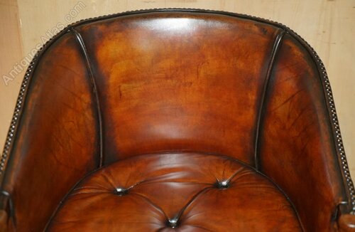 We are delighted to offer for sale this lovely pair of, fully restored hand, dyed cigar leather English tub or club Davenport armchairs with Thomas Chippendale style floating button Chesterfield seat cushions
