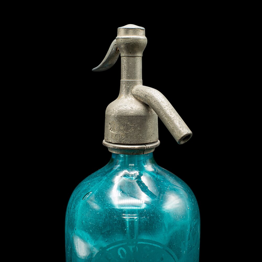 Duo of antique and vintage soda syphons, ideal as decorative display bottles
